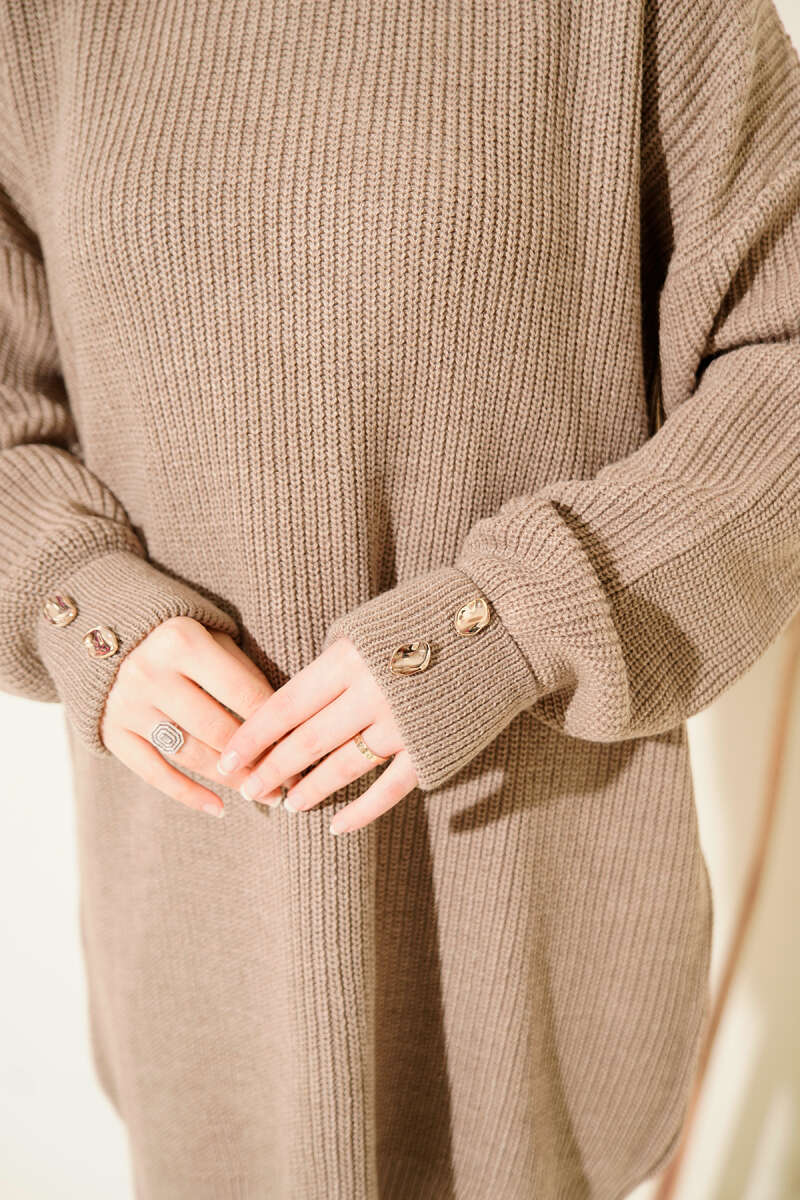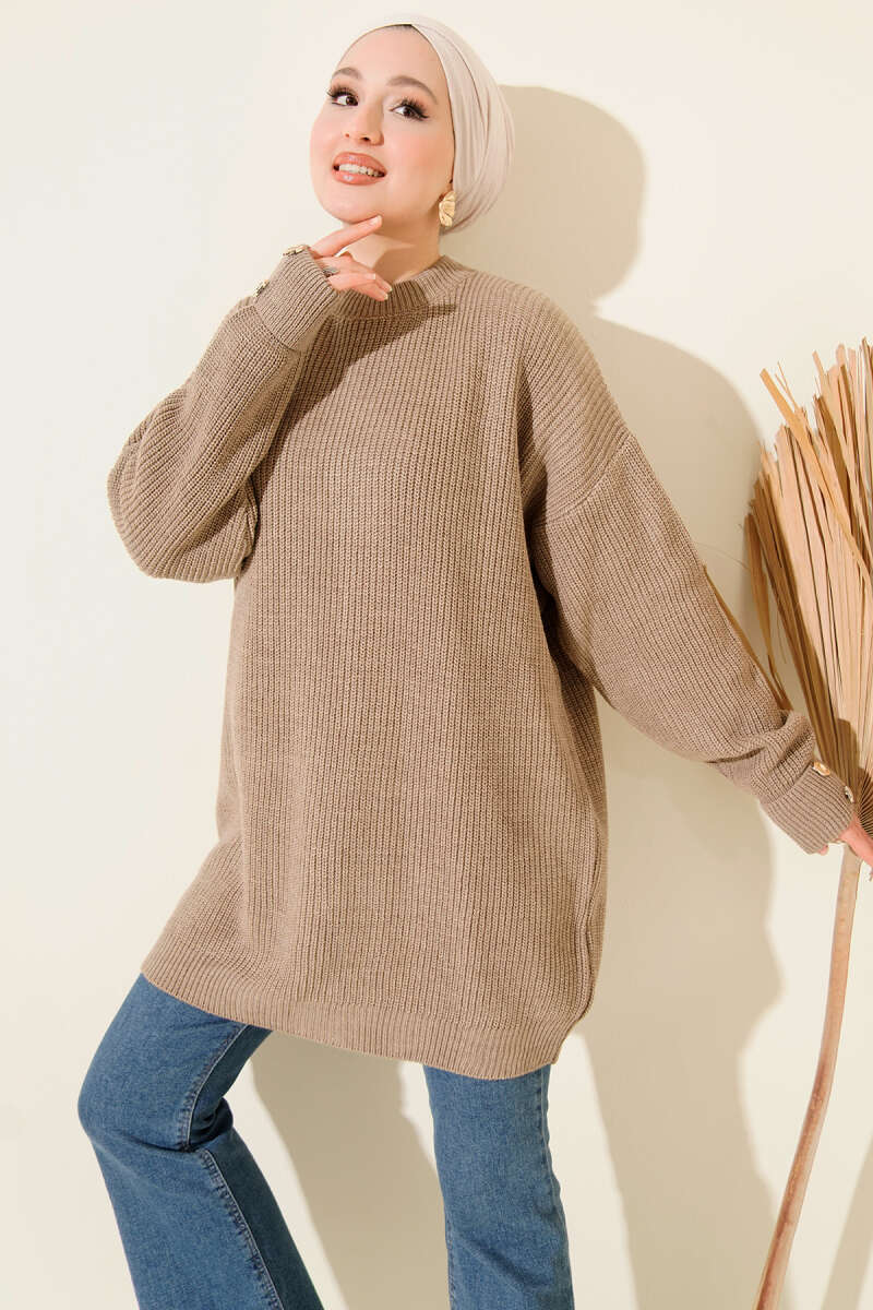 Kol Düğme Detaylı Triko Tunik Zümrüt