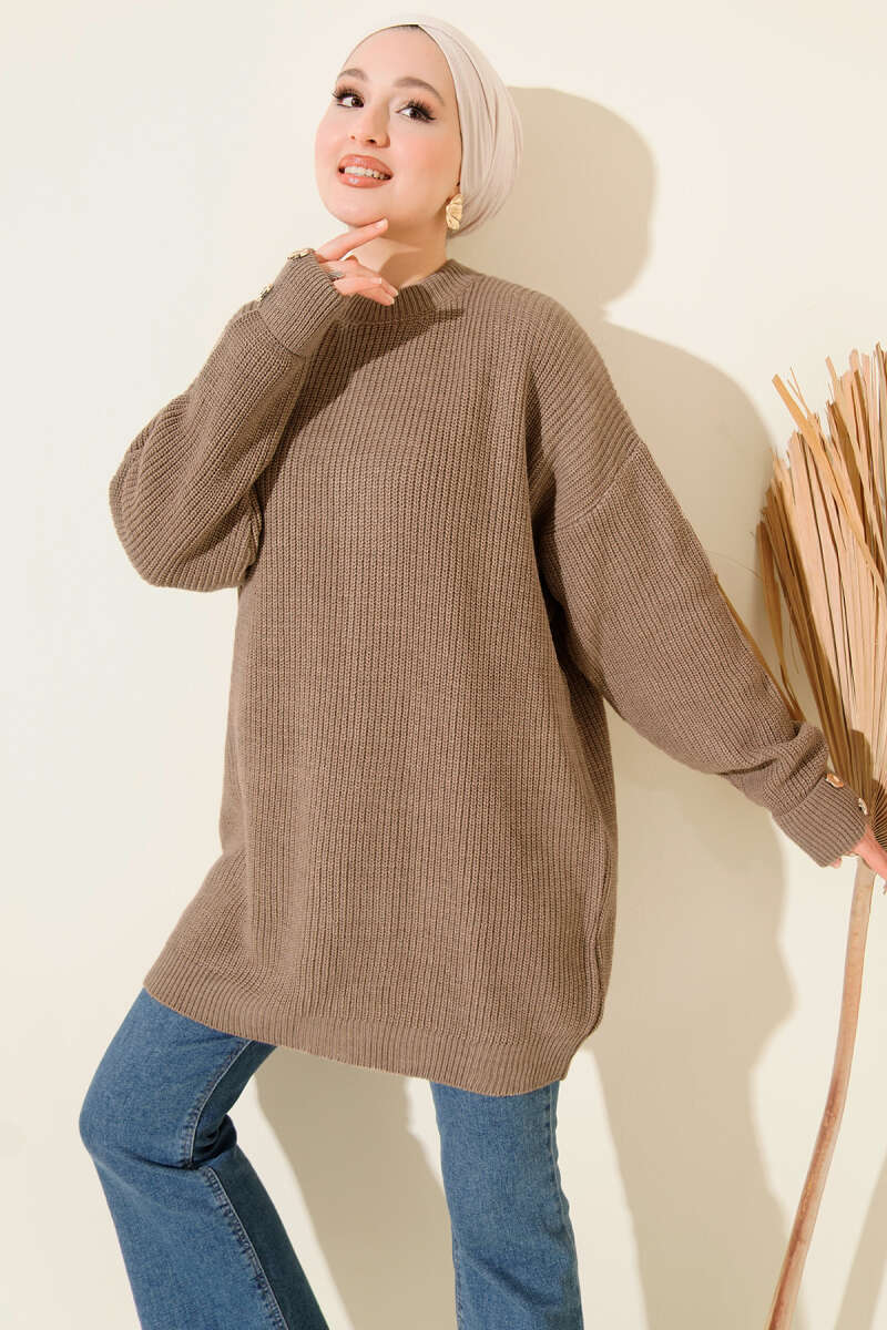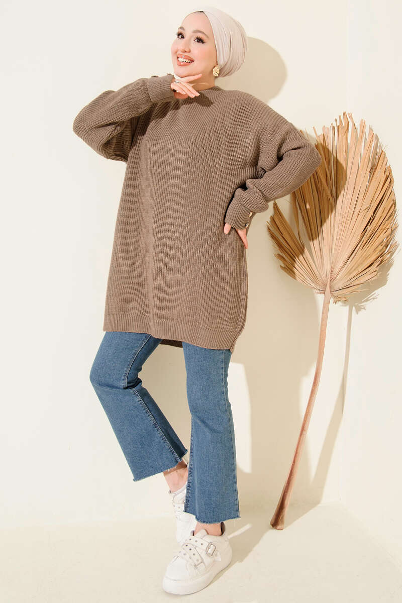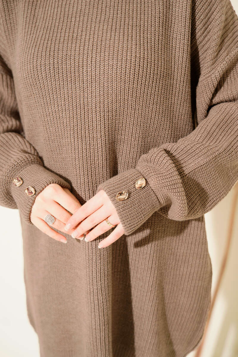 Basic Oversize Triko Tunik Acı Kahve