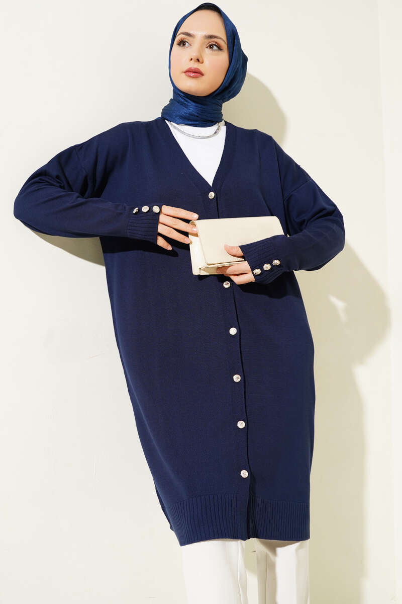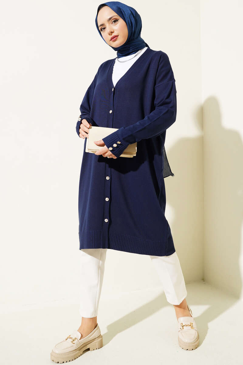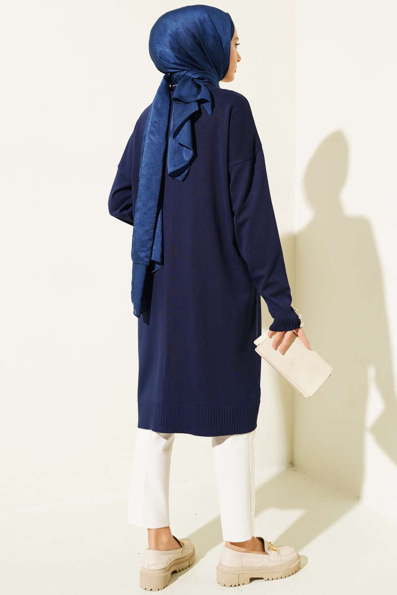 Çizgi Garnili Zımba Detaylı İkili Takım Lacivert