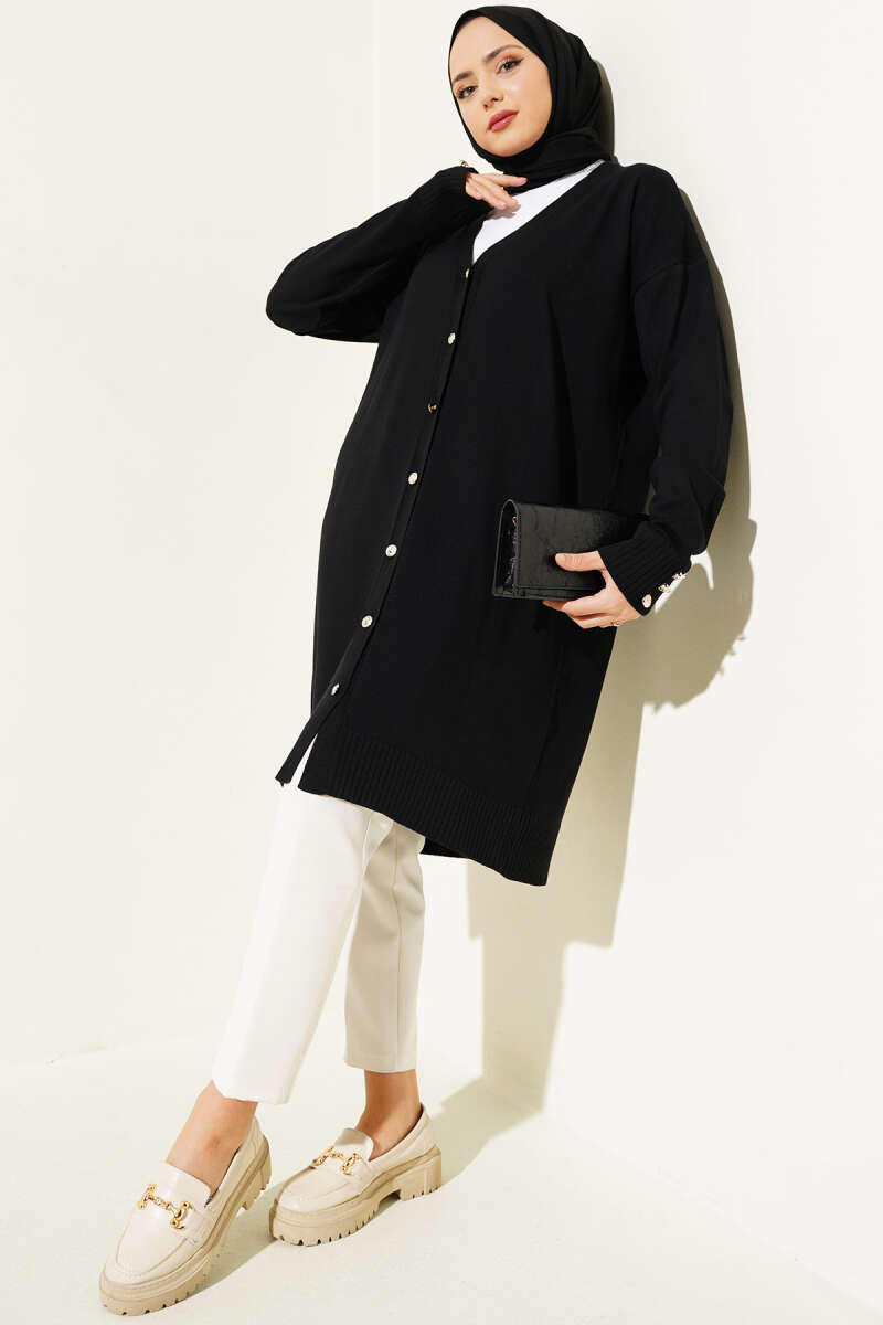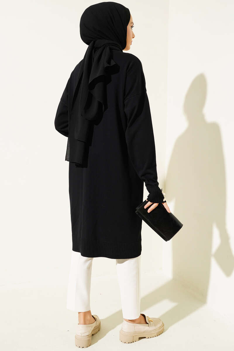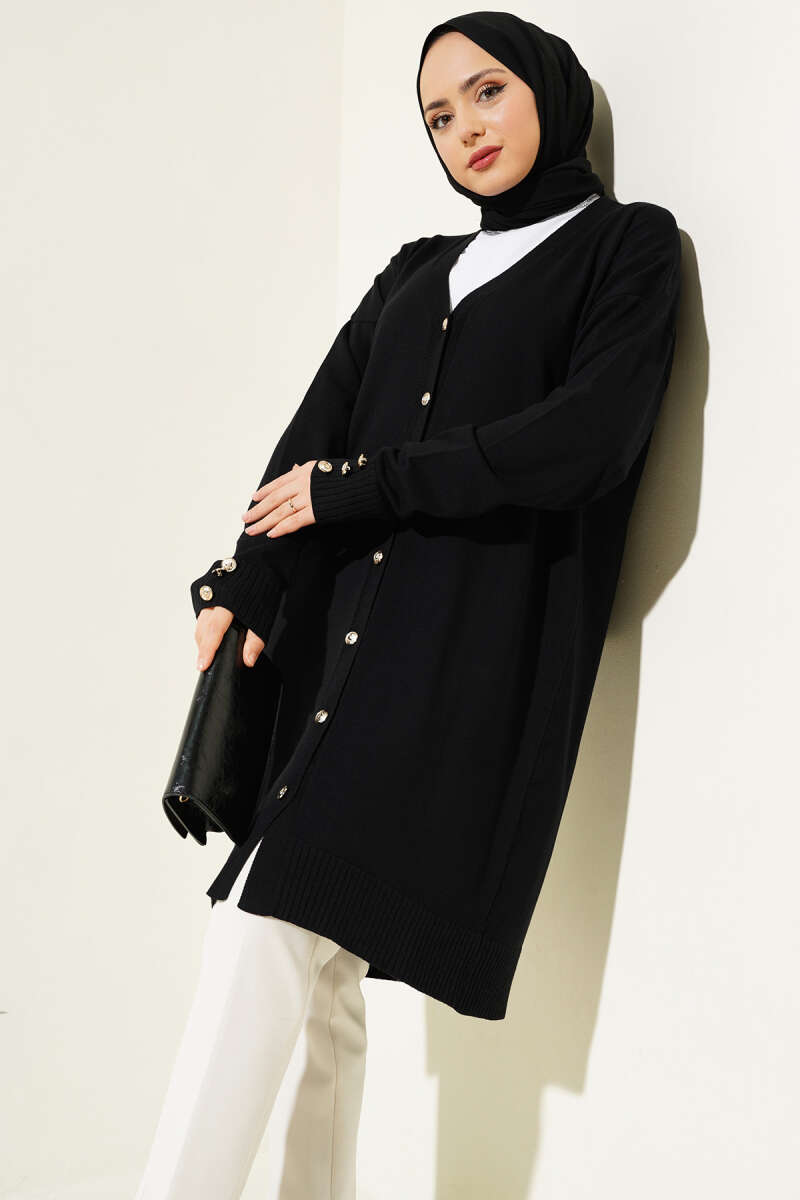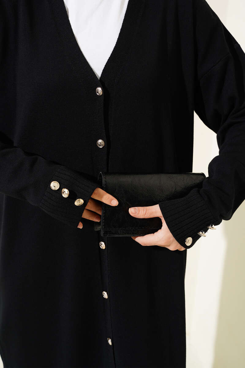 Basic Düğme Detaylı Triko Hırka Siyah