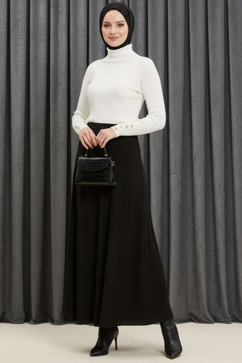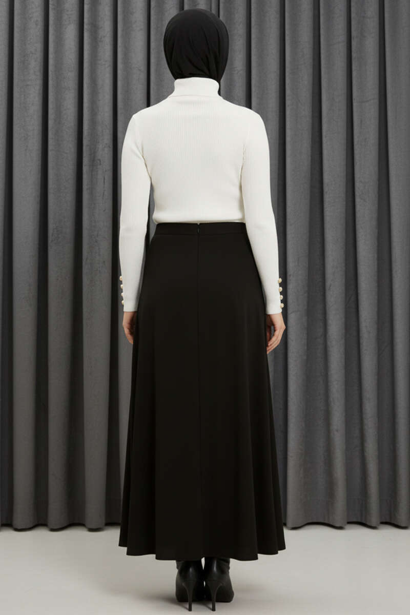 Dik Yaka Taşlı Triko Kazak Siyah
