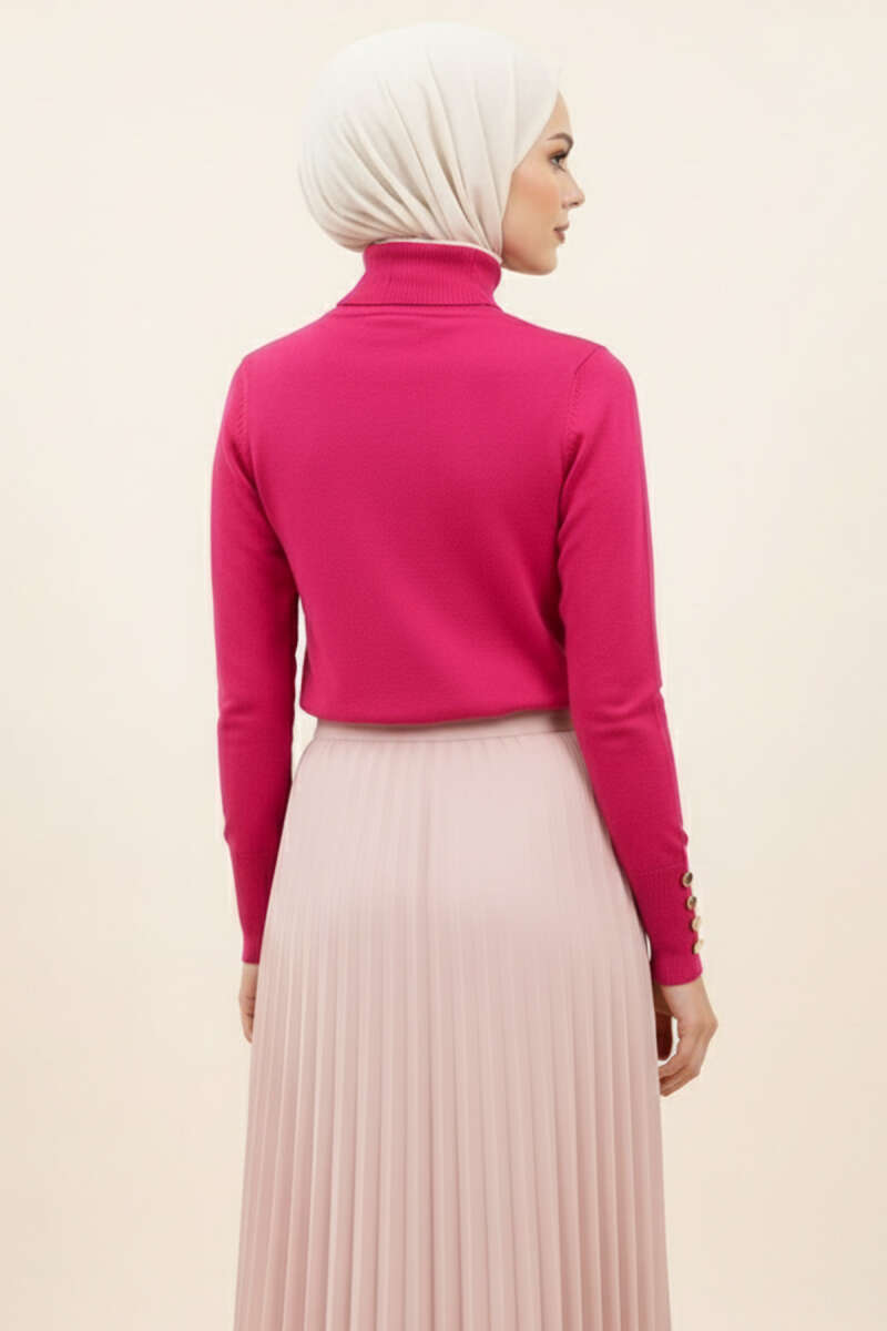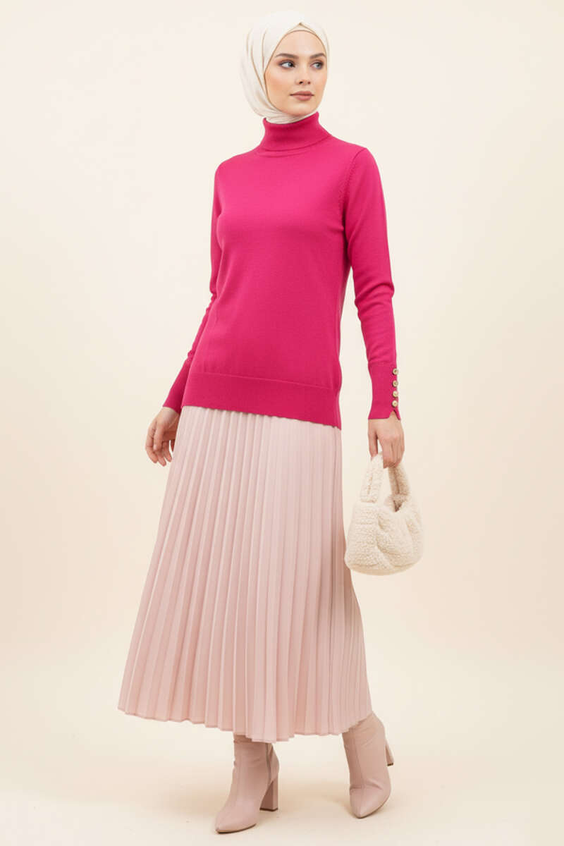 Bilek Düğmeli Fitilli Triko Tunik Lacivert