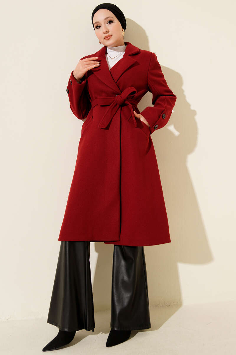 Kol Ribanalı Kuşaklı Tay Tüyü Kaban Mor