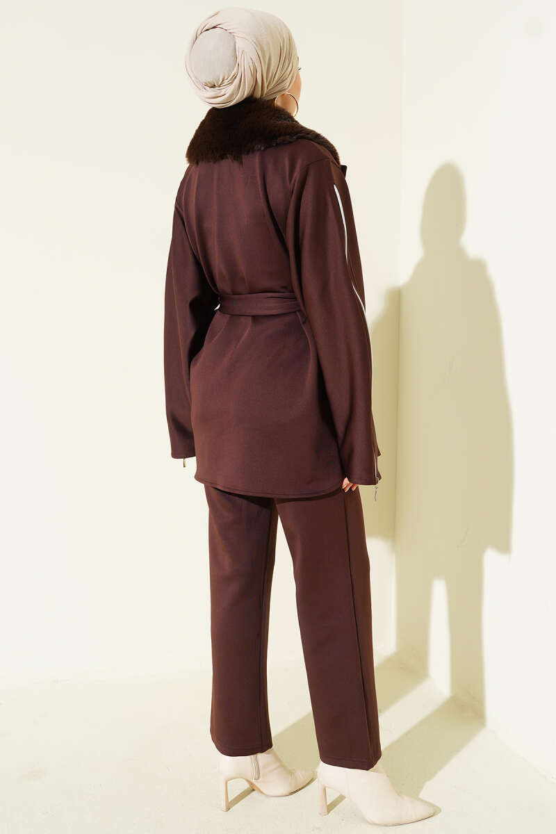 Dikişli Yarım Fermuarlı Kaşe İkili Takım Kahve