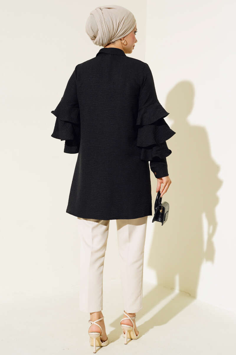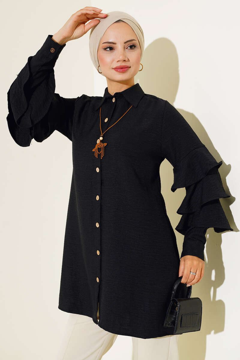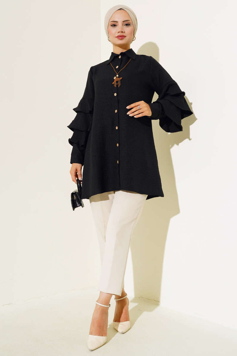 Taş Düğmeli Omuz Pileli Gömlek Buz Mavisi