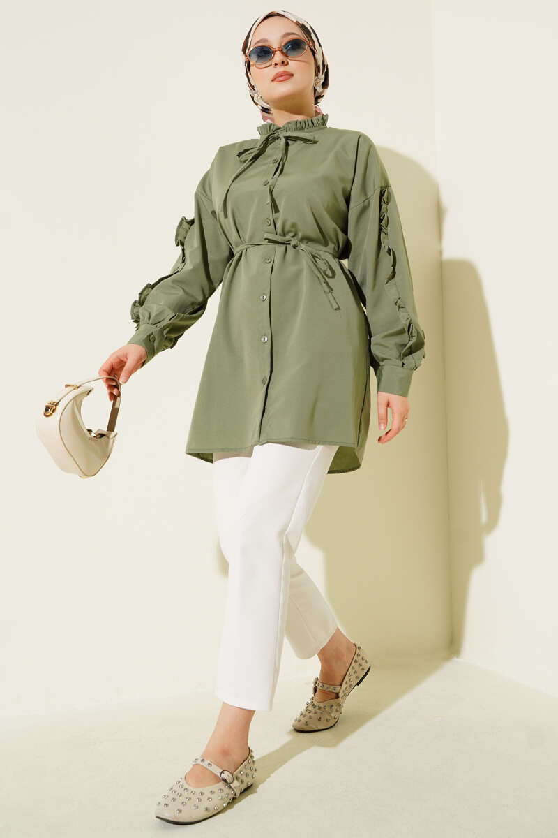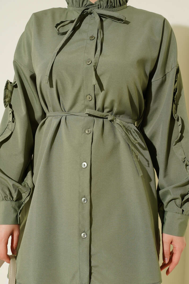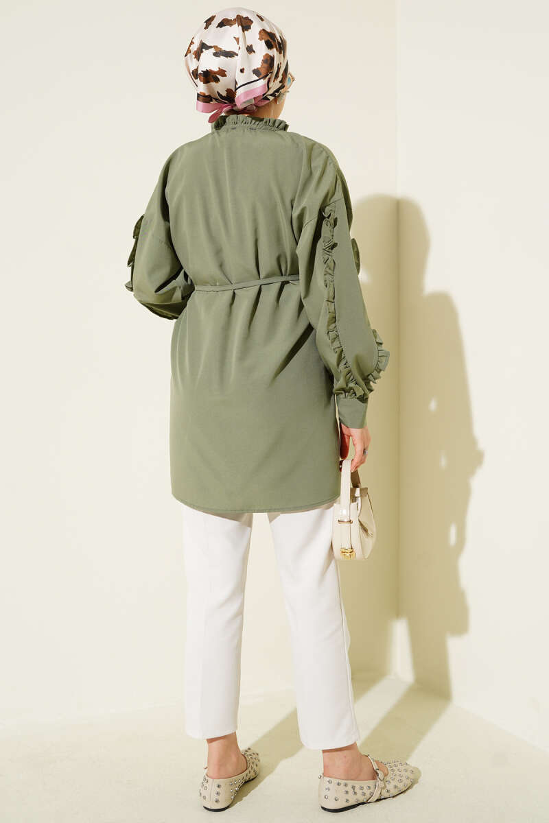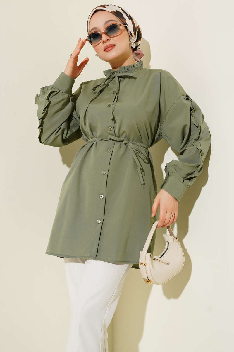 Kol Fırfırlı İp Kuşaklı Gömlek Fuşya