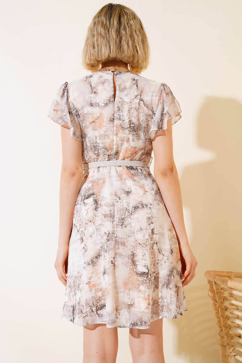 Yeni sezon elbise modelimiz sizlerle beraber. Elbisemiz v yakadır. Kolları fırfırlıdır. kısa koldur. Elbisemizin beli fermuarlıdır. İki adet kemer köprüsü olup, hasır kemeri vardır. Astarlıdır. Hem şık hem sportif tasarımıyla elbisemiz yazın vazgeçilmez parçası olacaktır.
