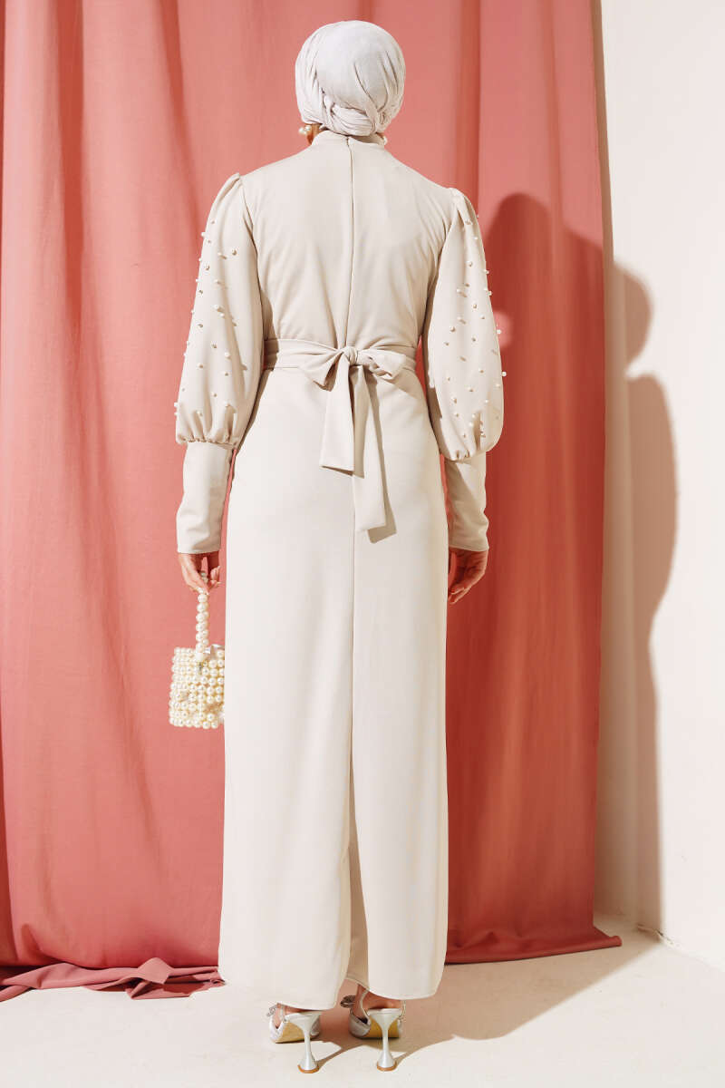 Bilek Bağlamalı Kuşaklı Abiye Elbise Haki