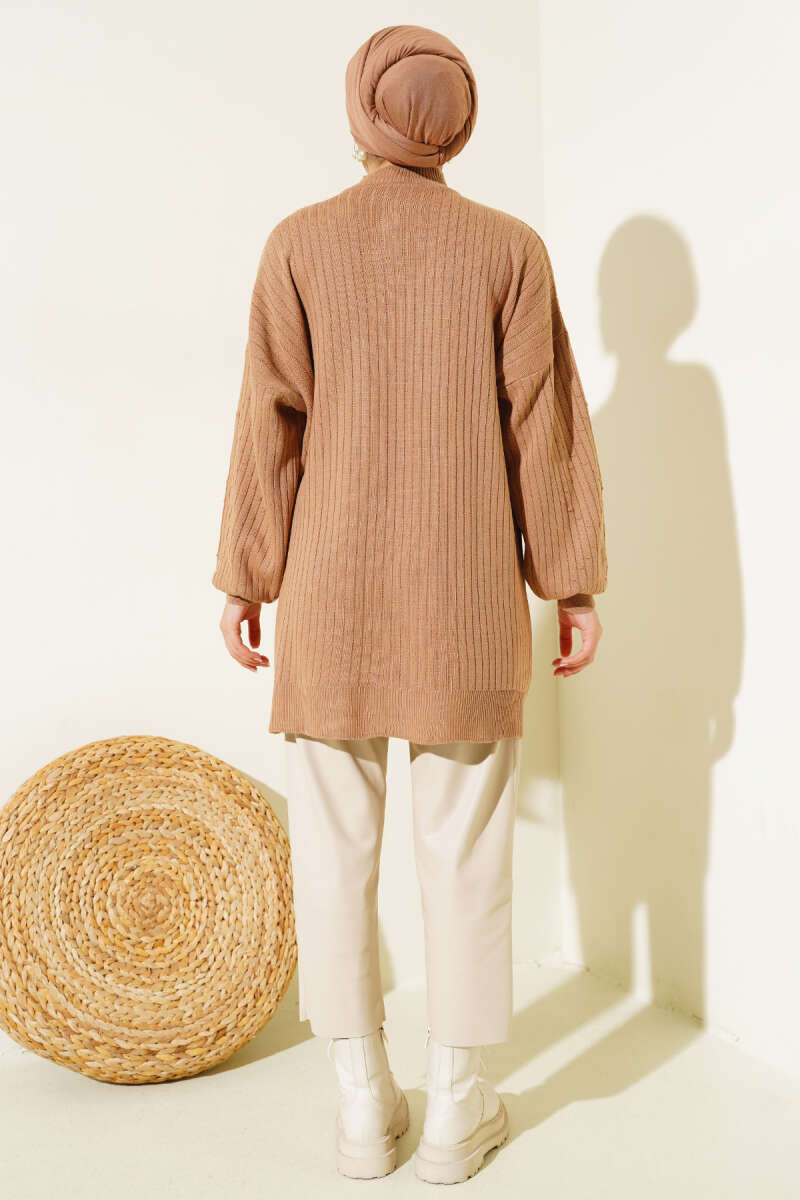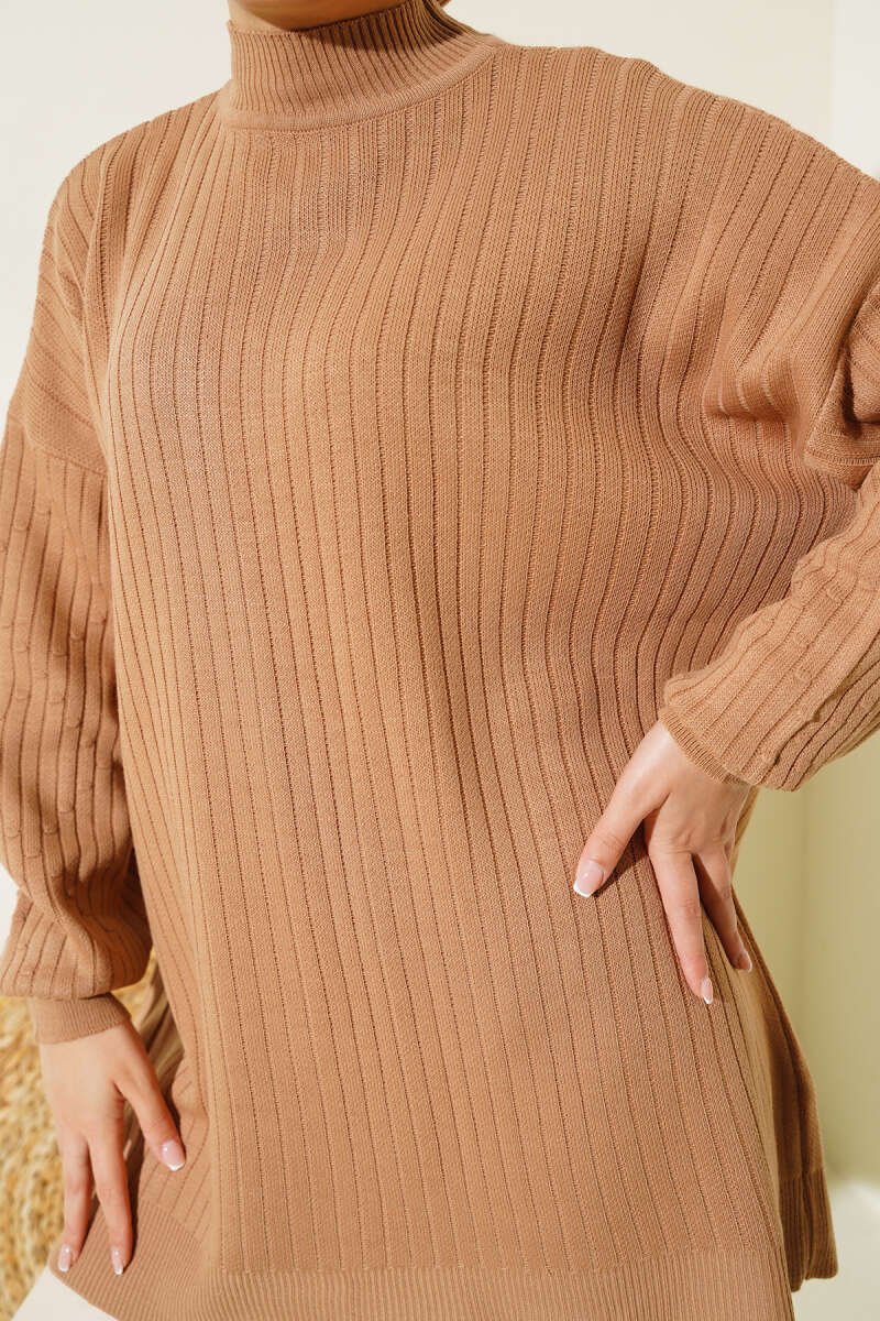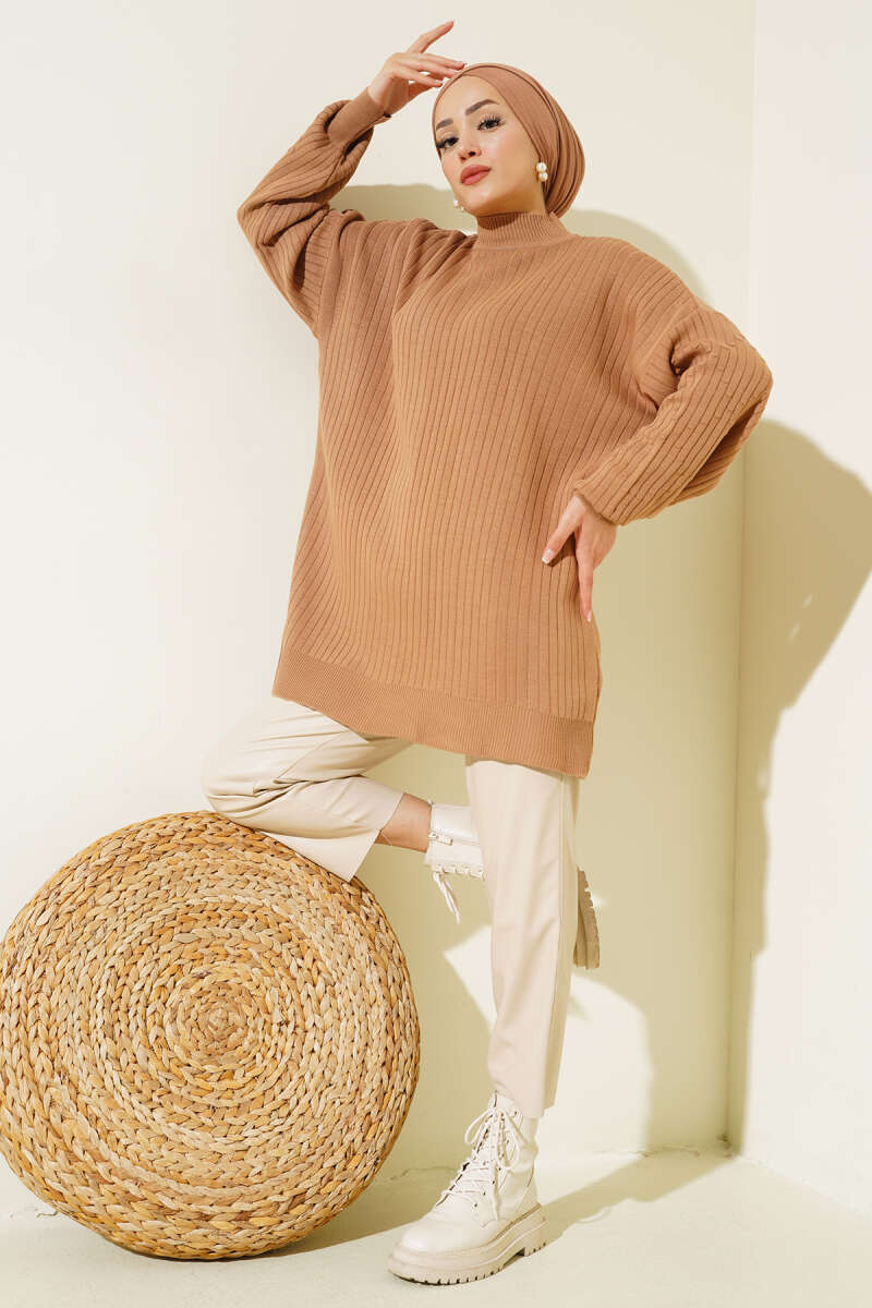Fitilli Balıkçı Yaka Triko Kazak Kahve