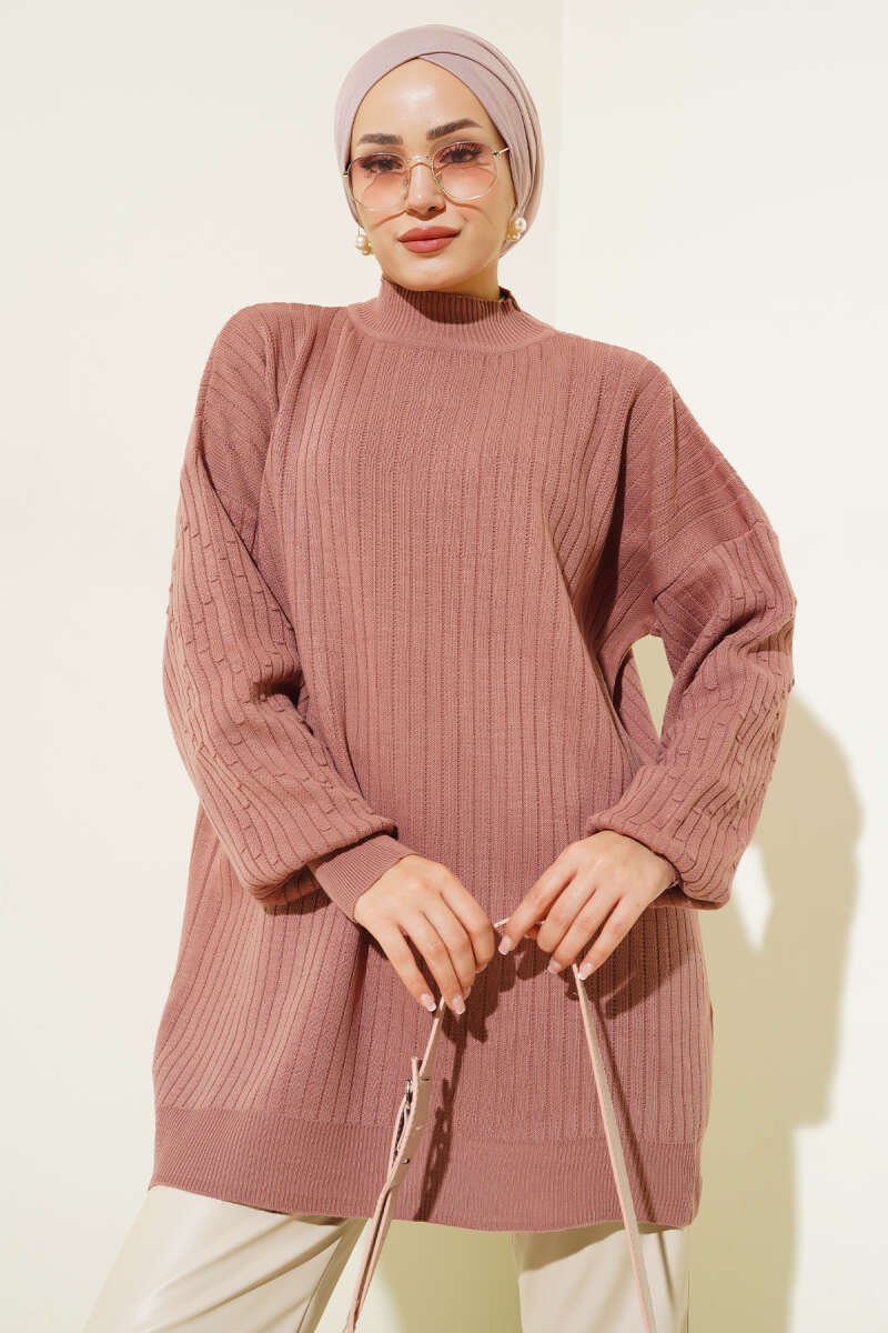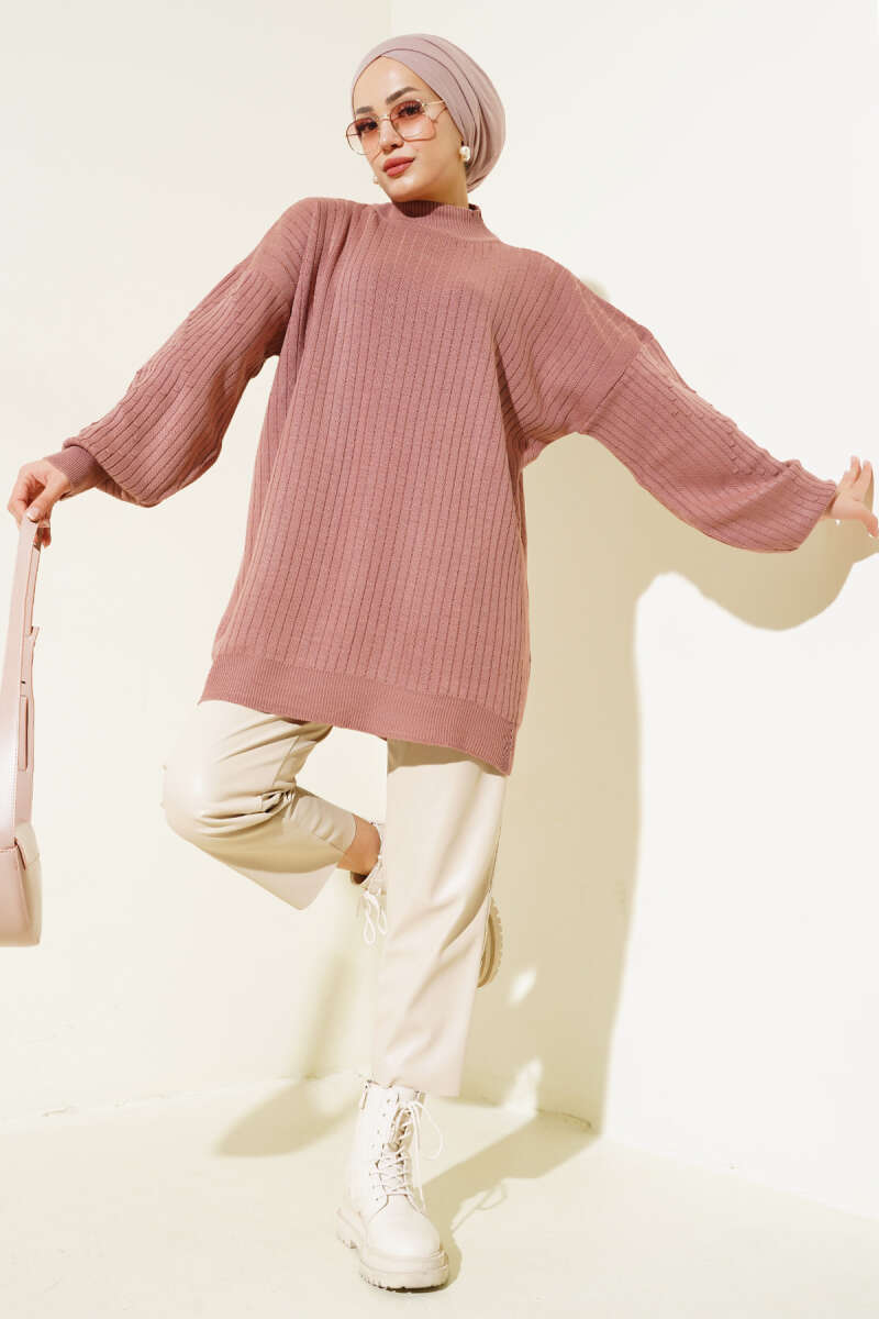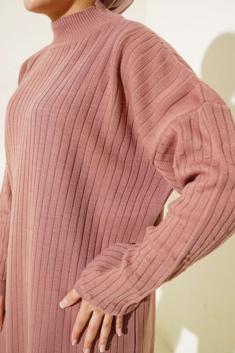 Çizgi Baklava Desen Triko Tunik Zümrüt