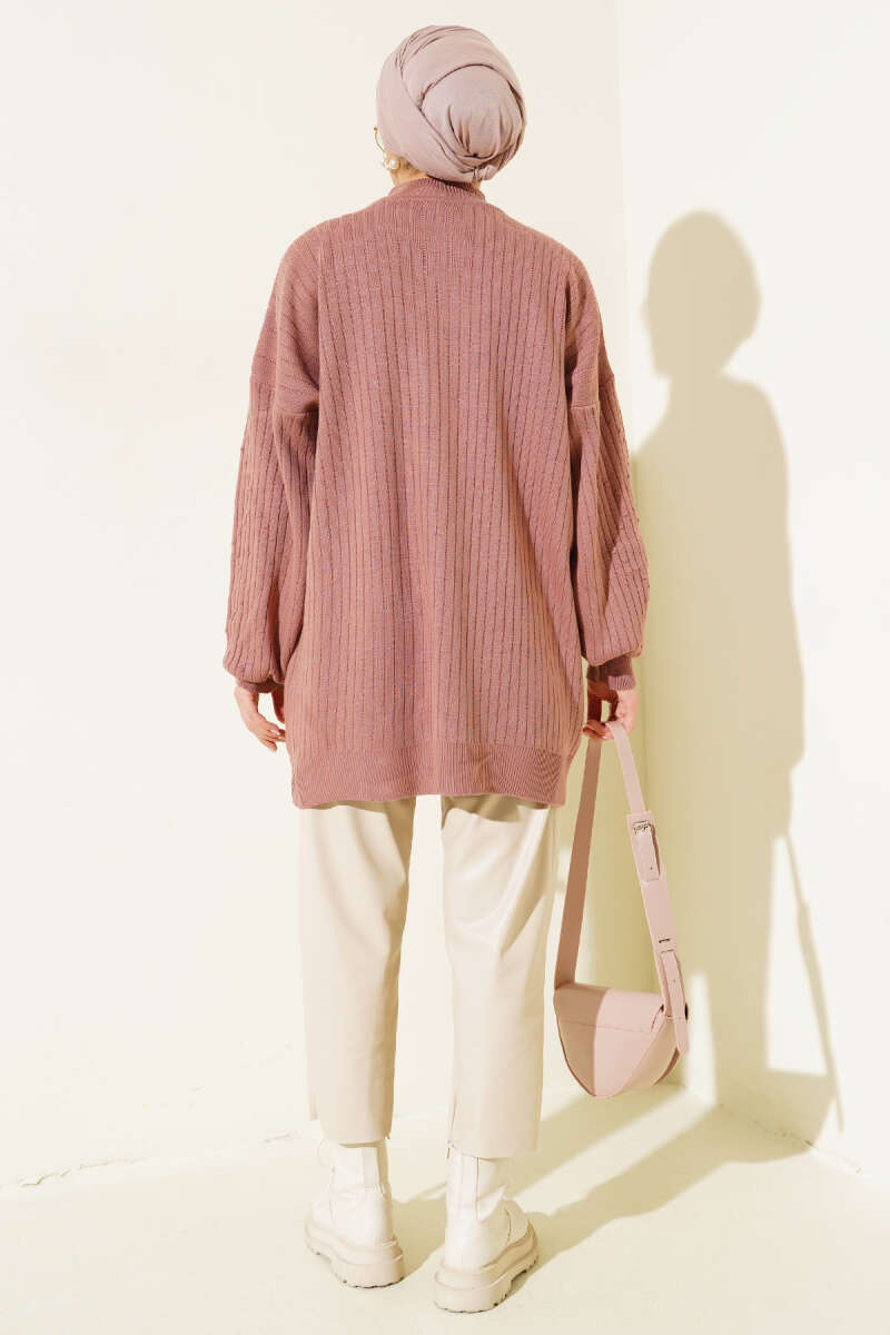 Çizgi Baklava Desen Triko Tunik Yağ Yeşili