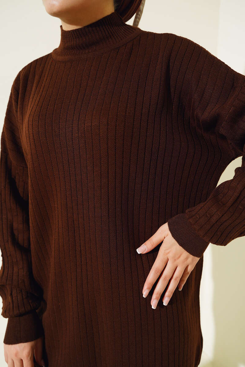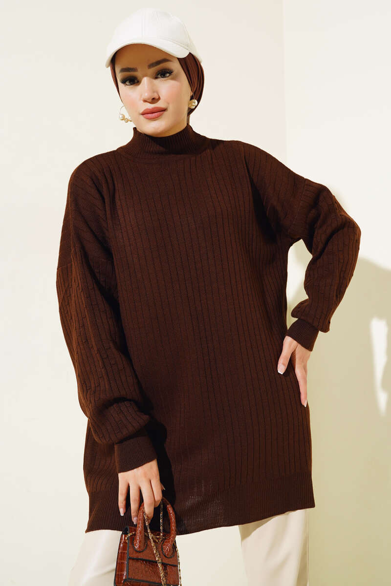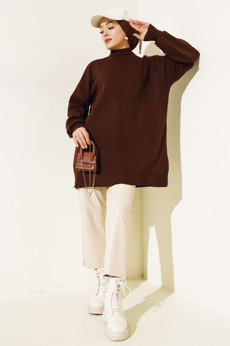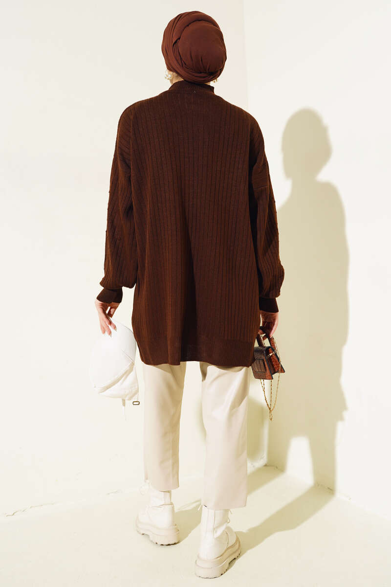 Fitilli Balıkçı Yaka Triko Kazak Kahve