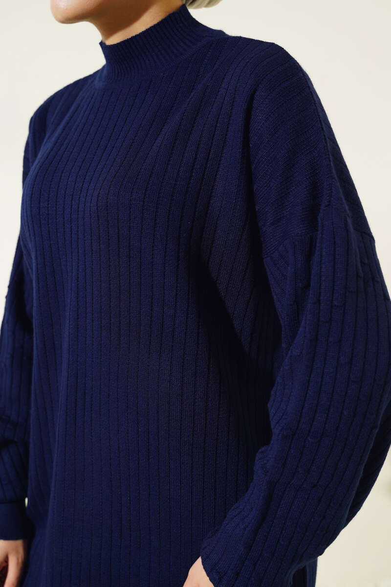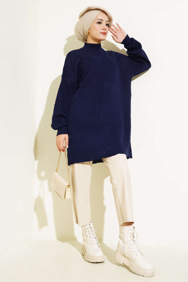 Kol Kabartmalı Fitilli Triko Tunik Büsküvi