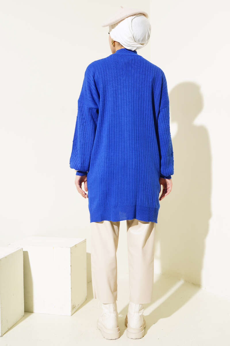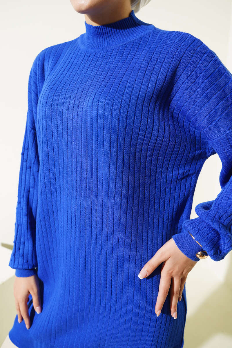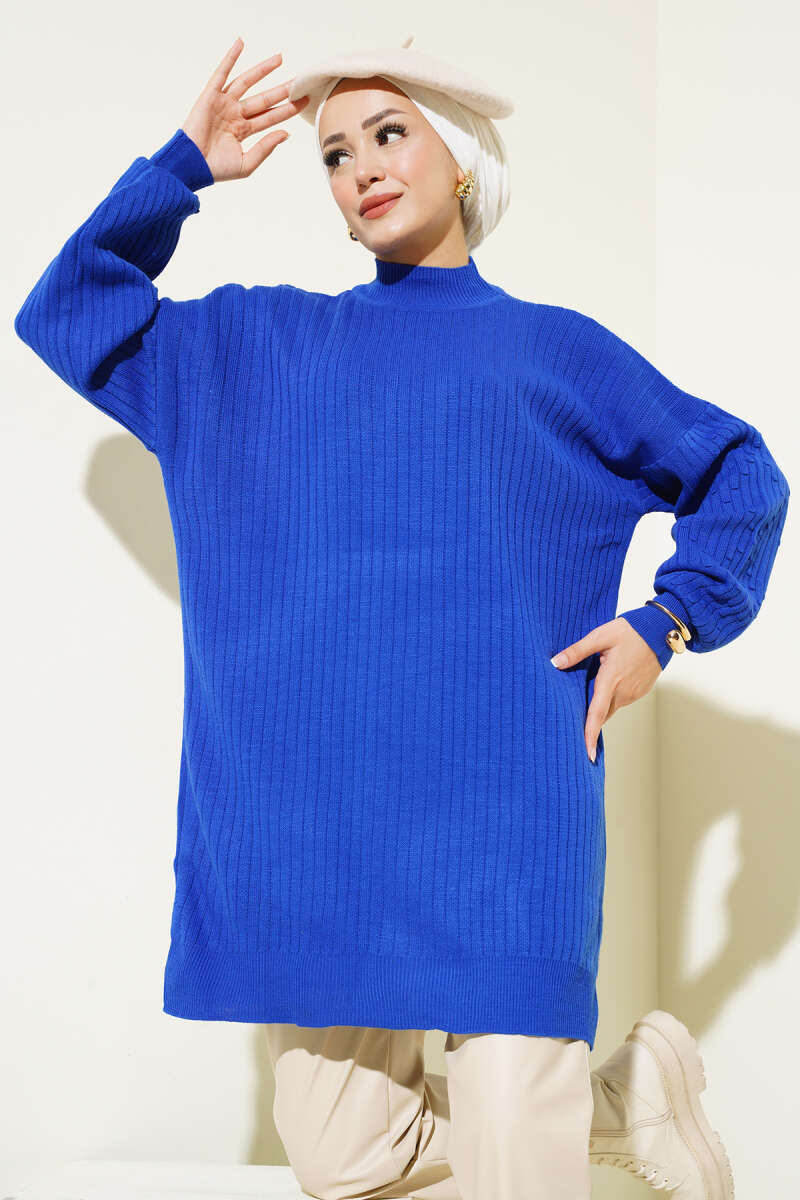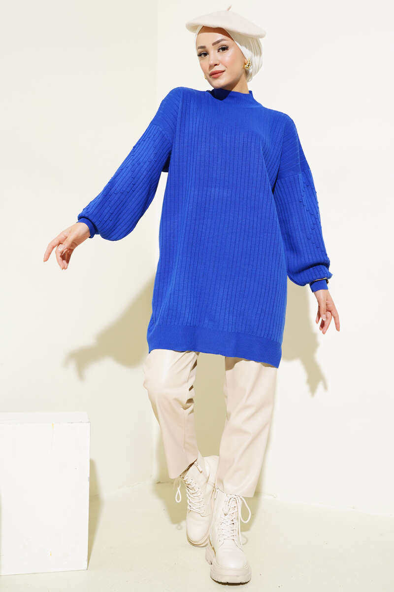Yaka Fularlı Yumoş Triko Tunik Mor