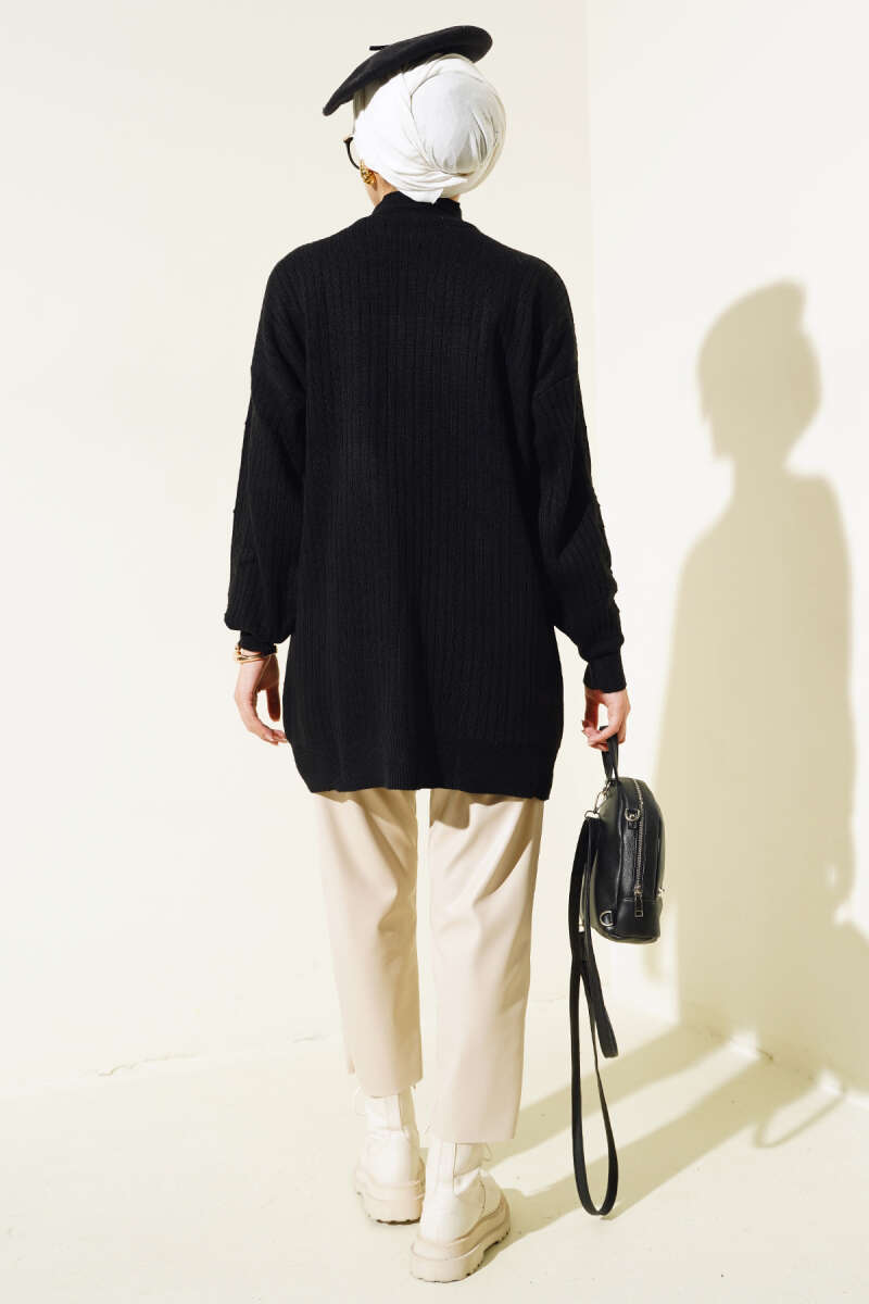 Kapüşonlu Fermuarlı Salaş Hırka Siyah