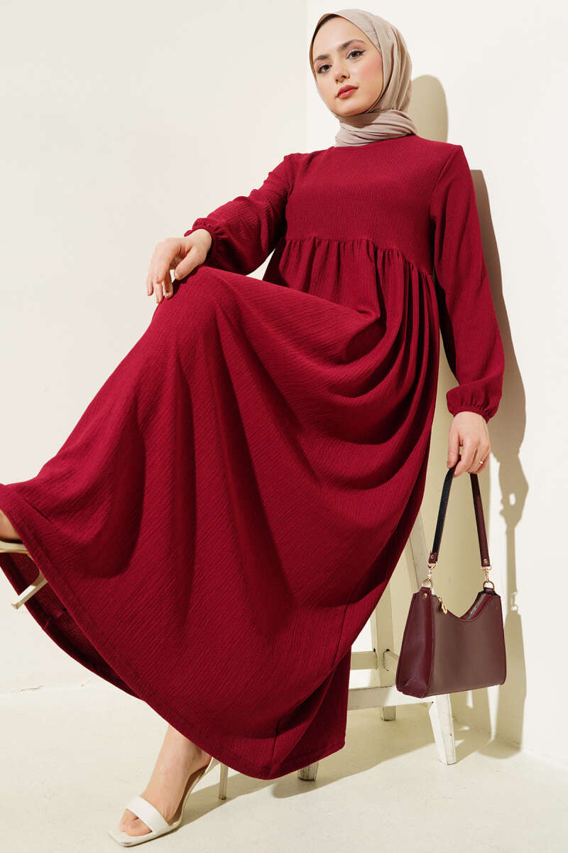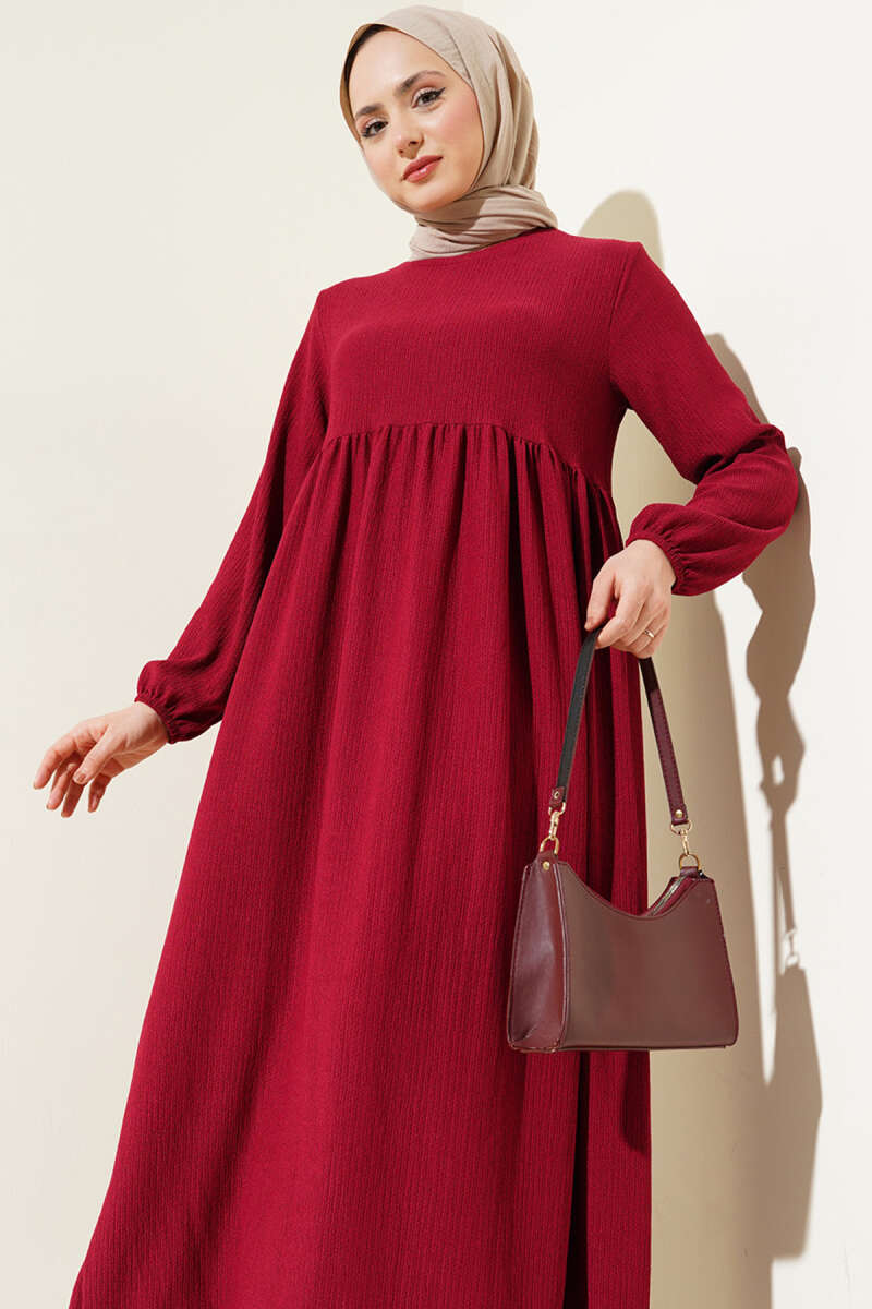 Önü Düğmeli Kat Kat Basic Elbise Vizon