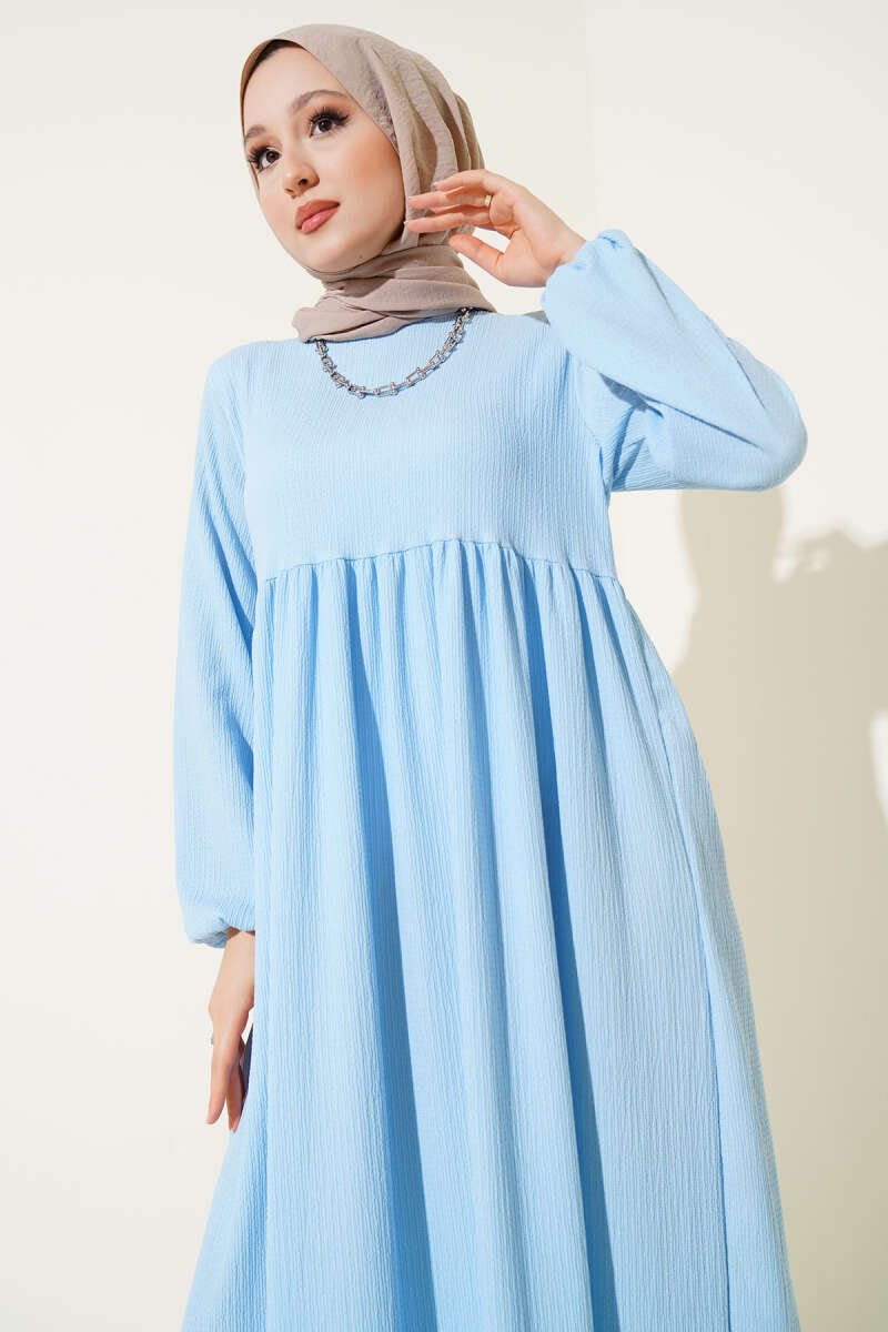 Kol Lastikli Bürümcük Elbise Buz Mavisi