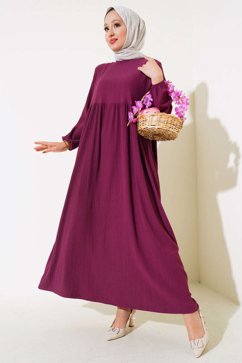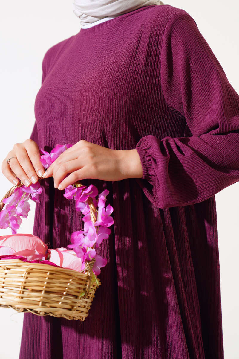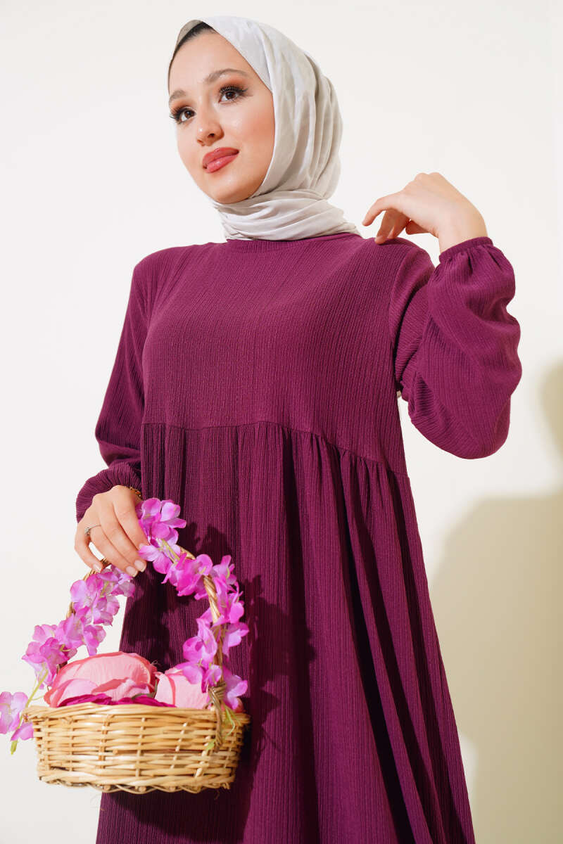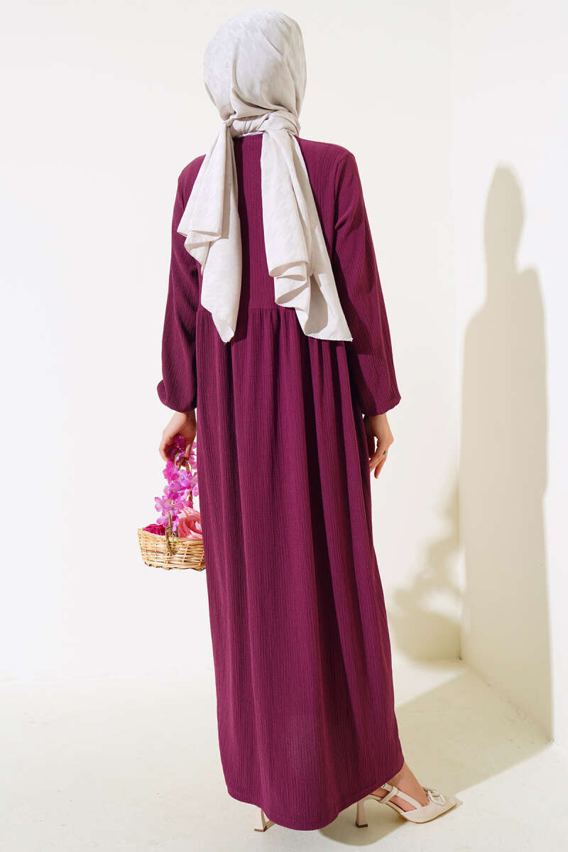Önü Düğmeli Kat Kat Basic Elbise Vizon