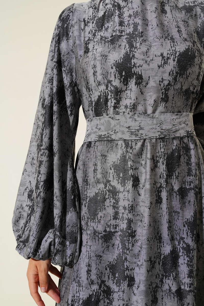 Ekoseli İp Kuşaklı Elbise Füme