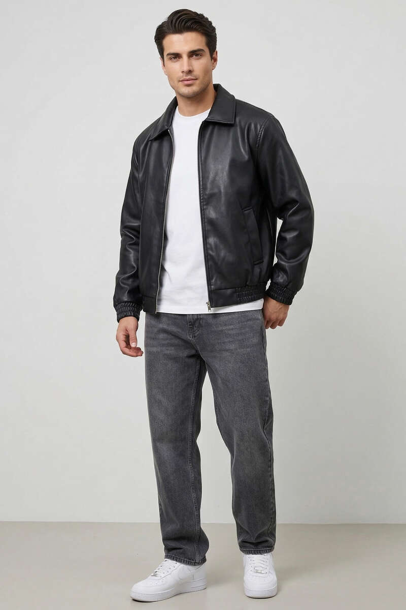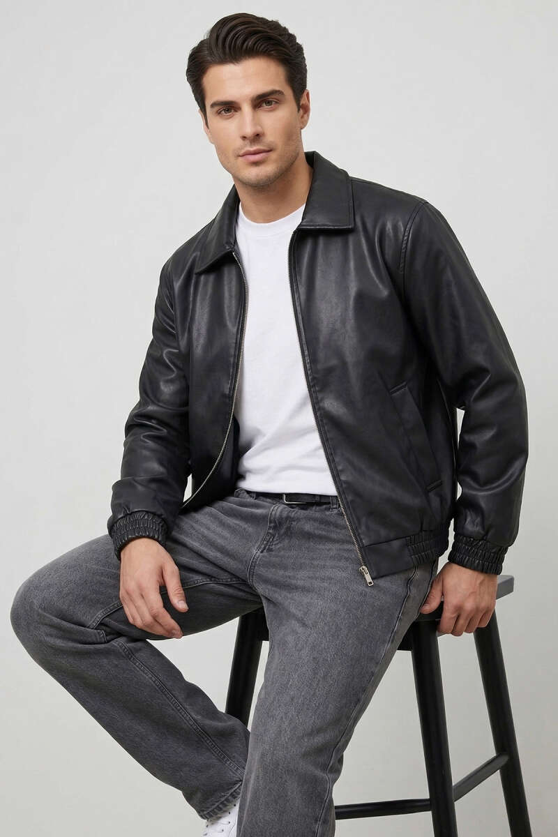 Fermuar Cepli Erkek Mevsimlik Mont Siyah