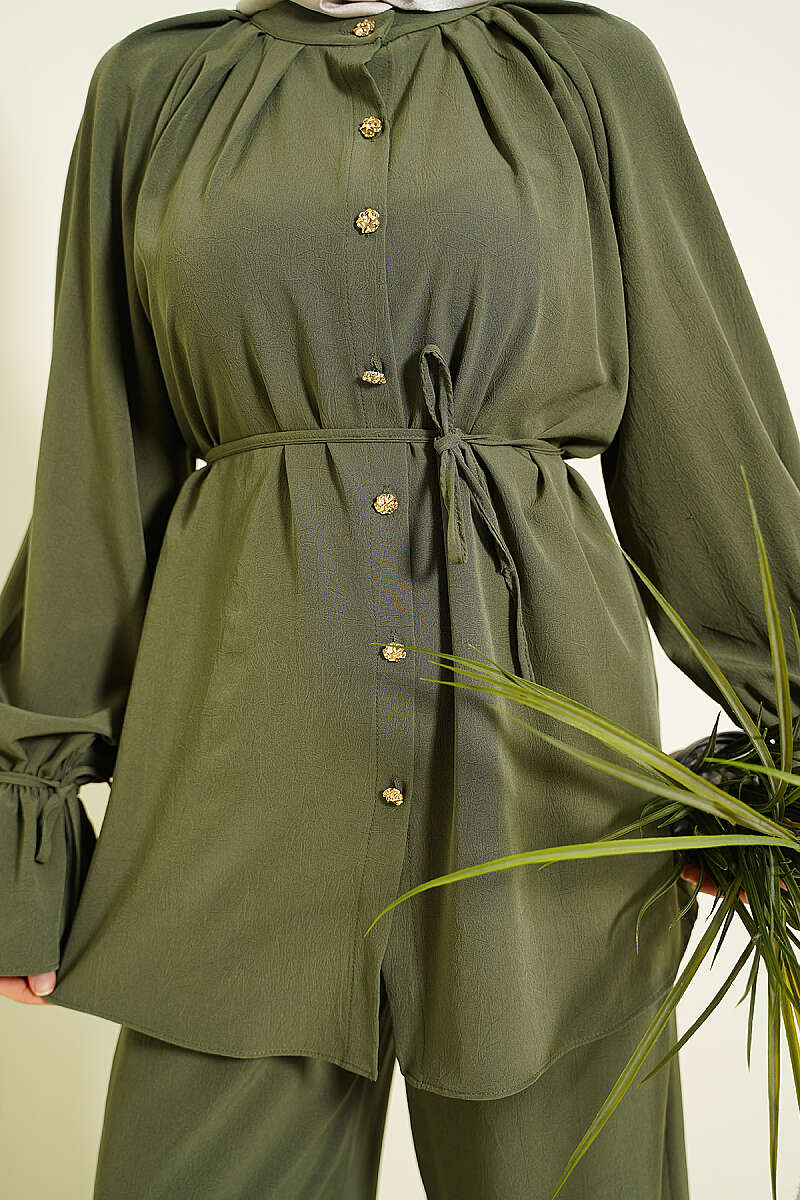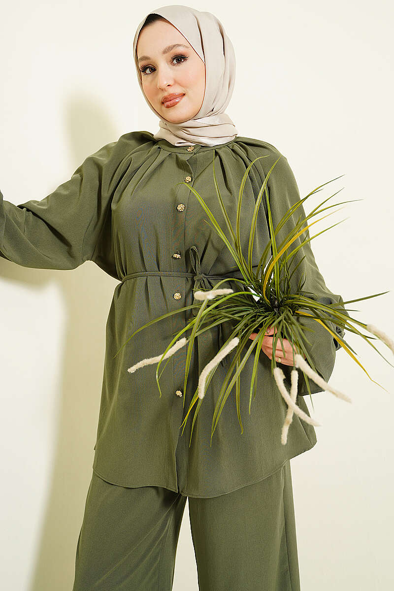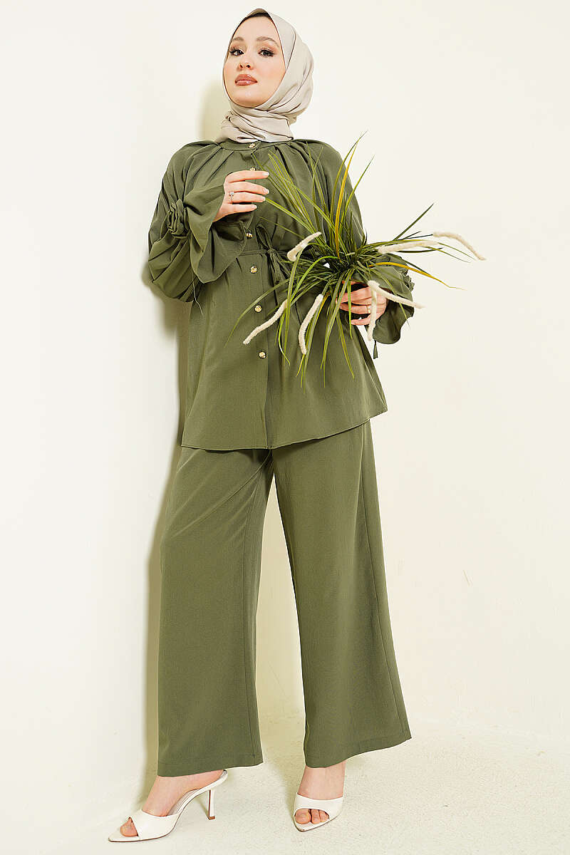 Kol Manşeti Gül Detaylı İkili Takım Haki