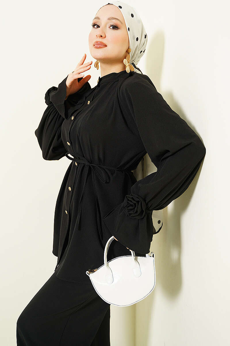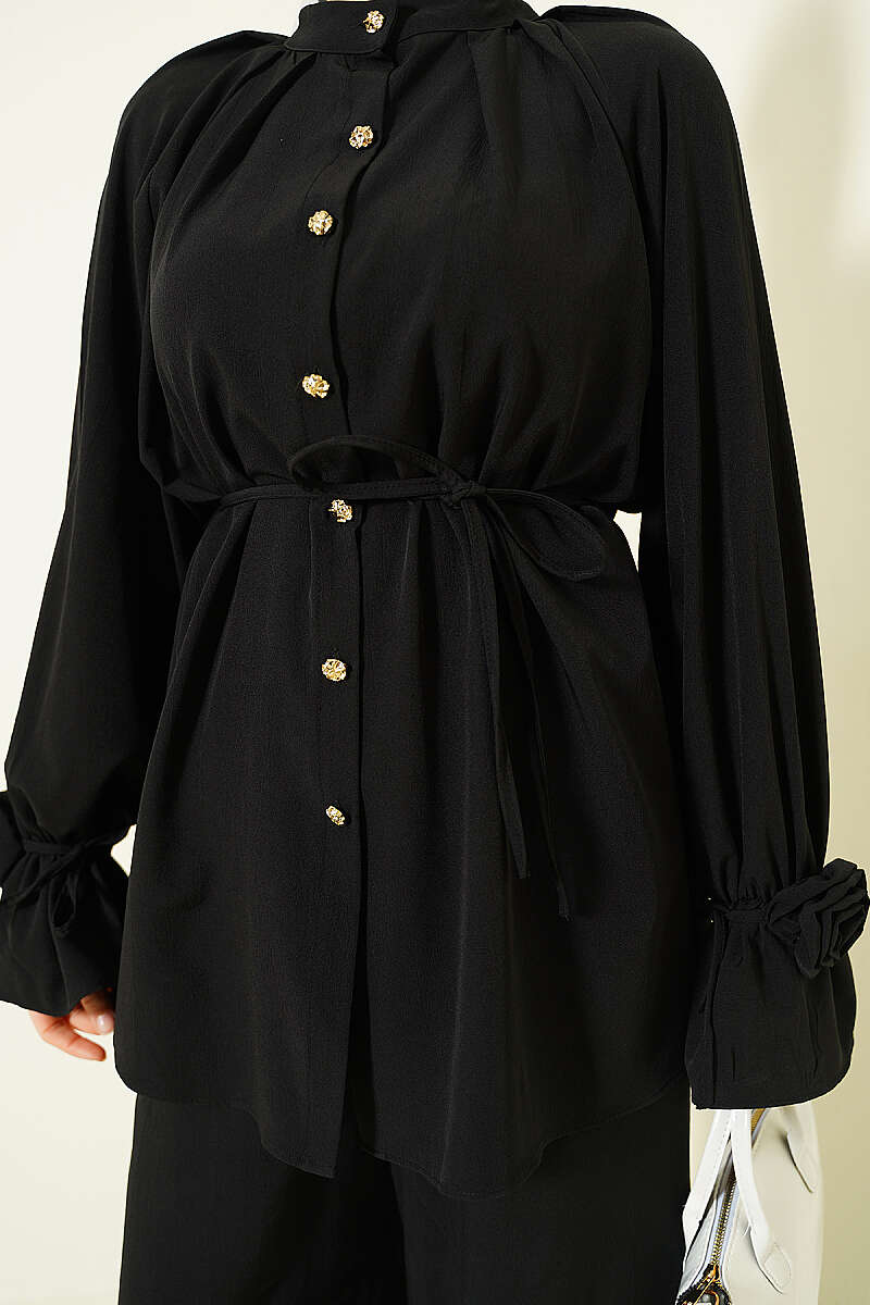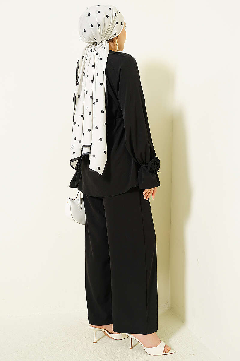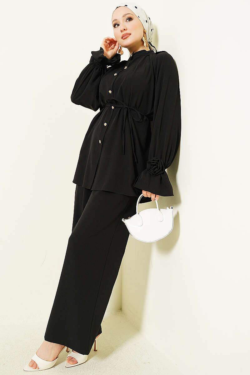 Kol Manşeti Gül Detaylı İkili Takım Siyah