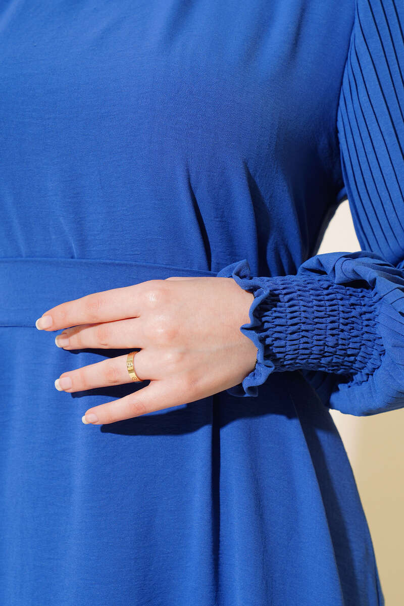 Yeni sezon elbisemiz sizlerle beraber. Elbisemizin kol bilekleri büzgülüdür. Kolları pilelidir. Belinde iki adet kemer köprüsü ve kendi kumaşından kuşağı bulunur. Elbisemizin renk seçenekleri mevcuttur.