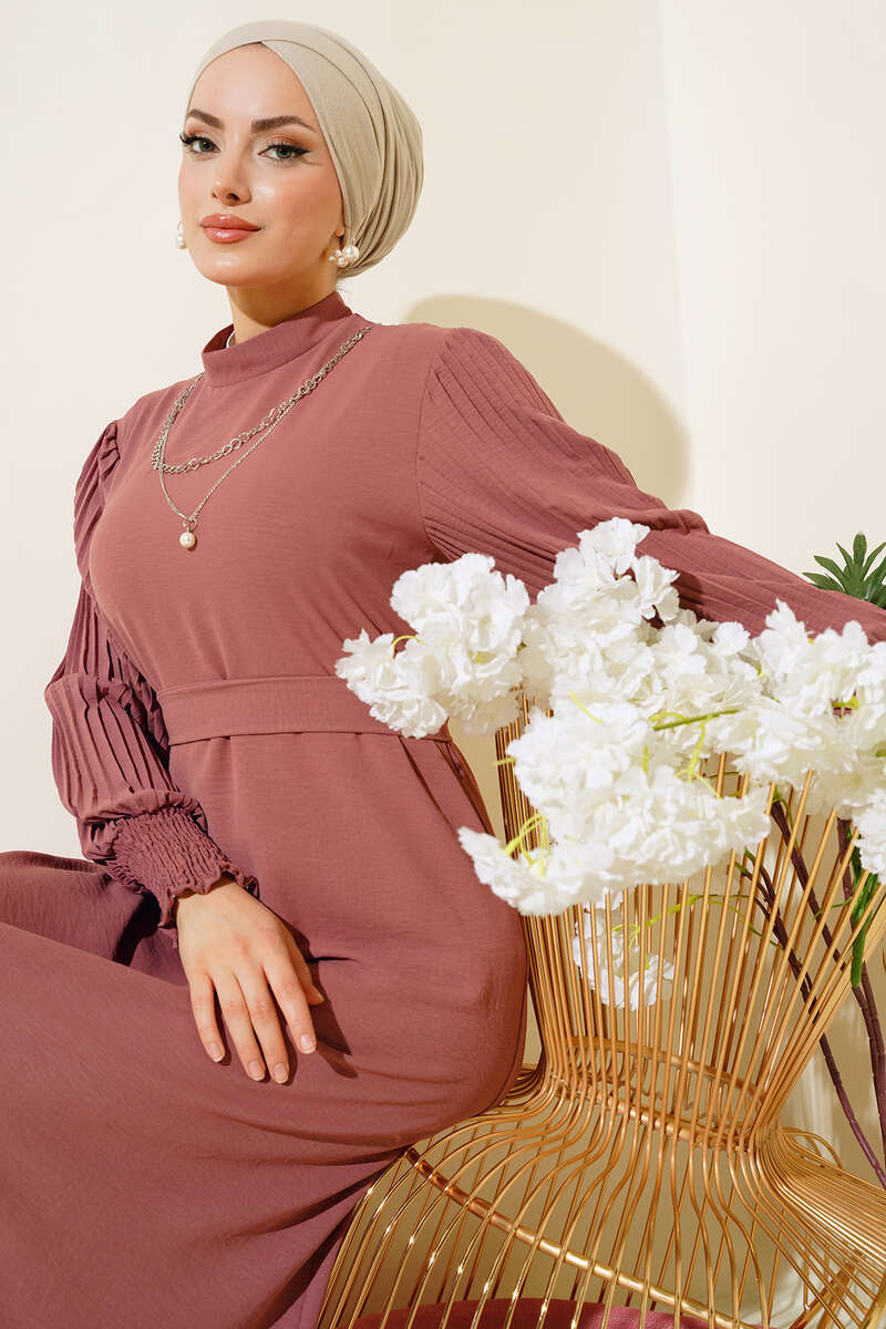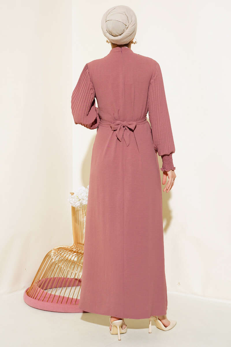 Kol Piliseli Elbise Pudra
