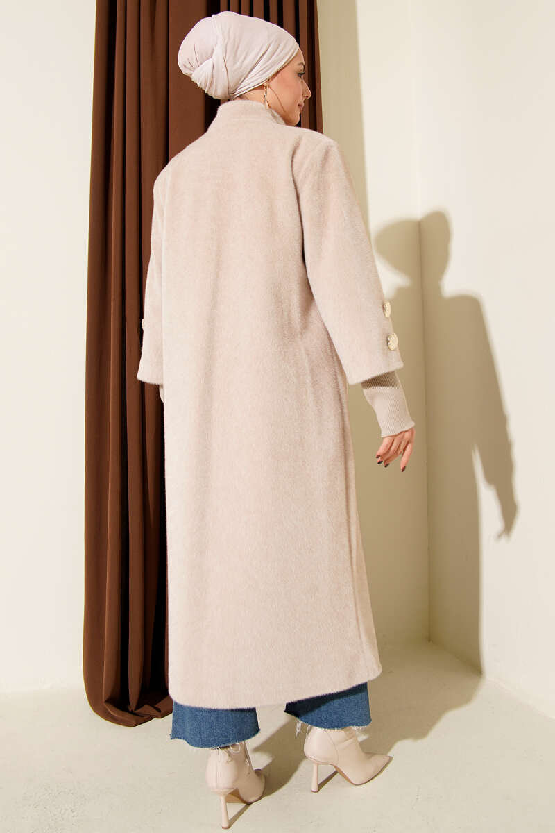 Kruvaze Gold Düğmeli Kaşe Kaban Bej