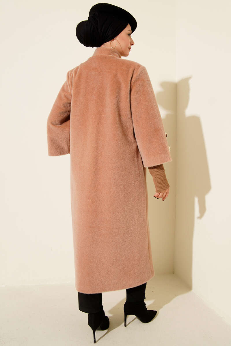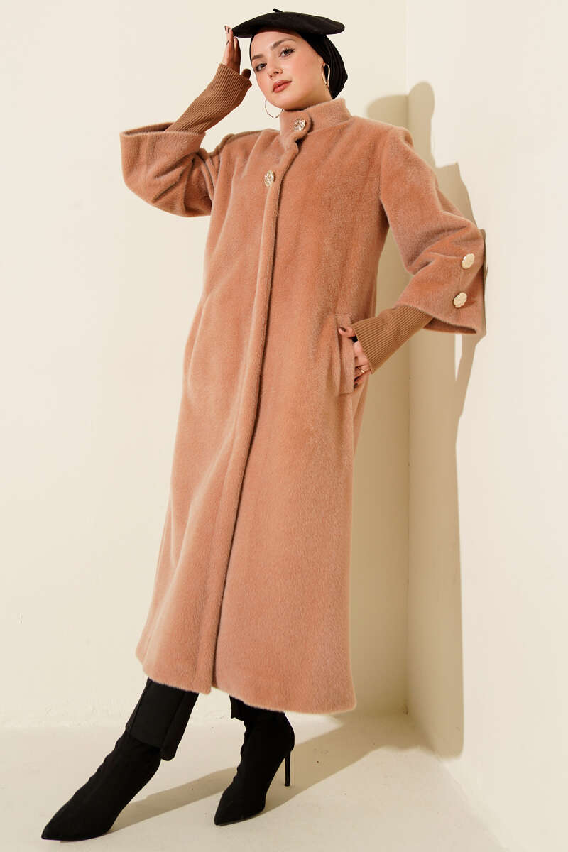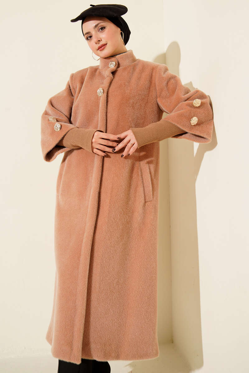 Kol Ribanalı Gold Düğmeli Kaban Kahve