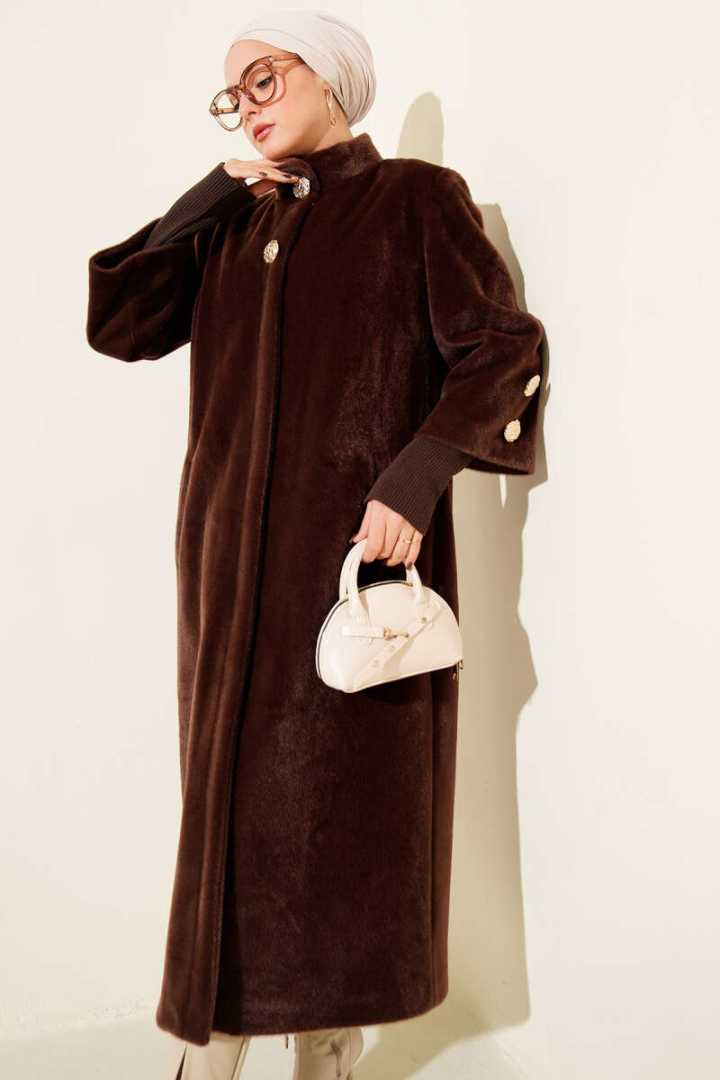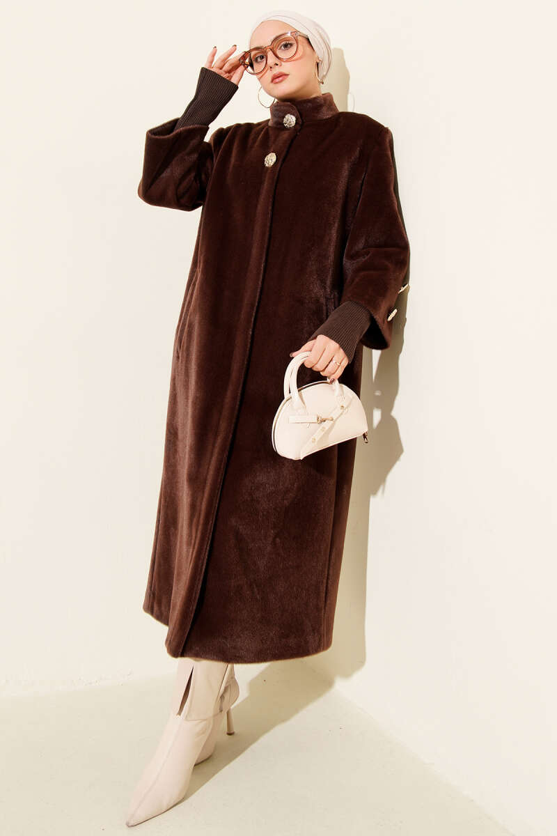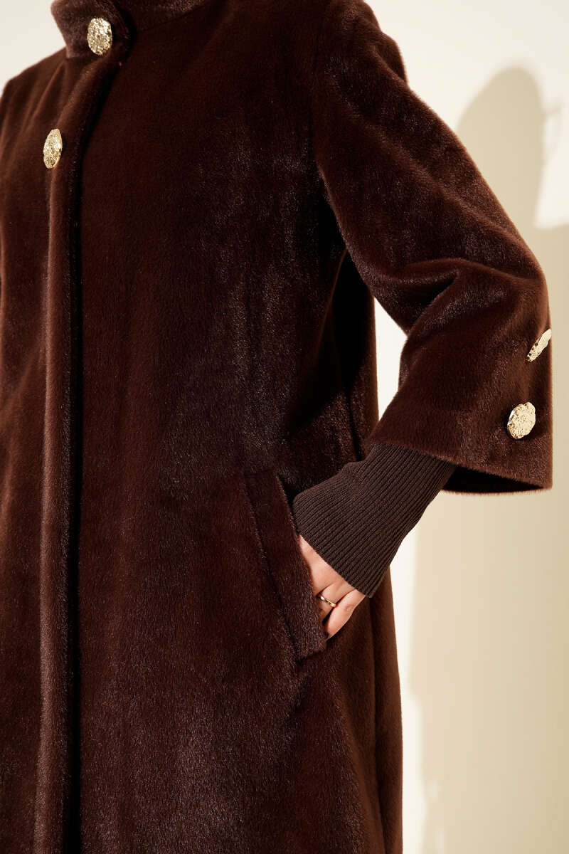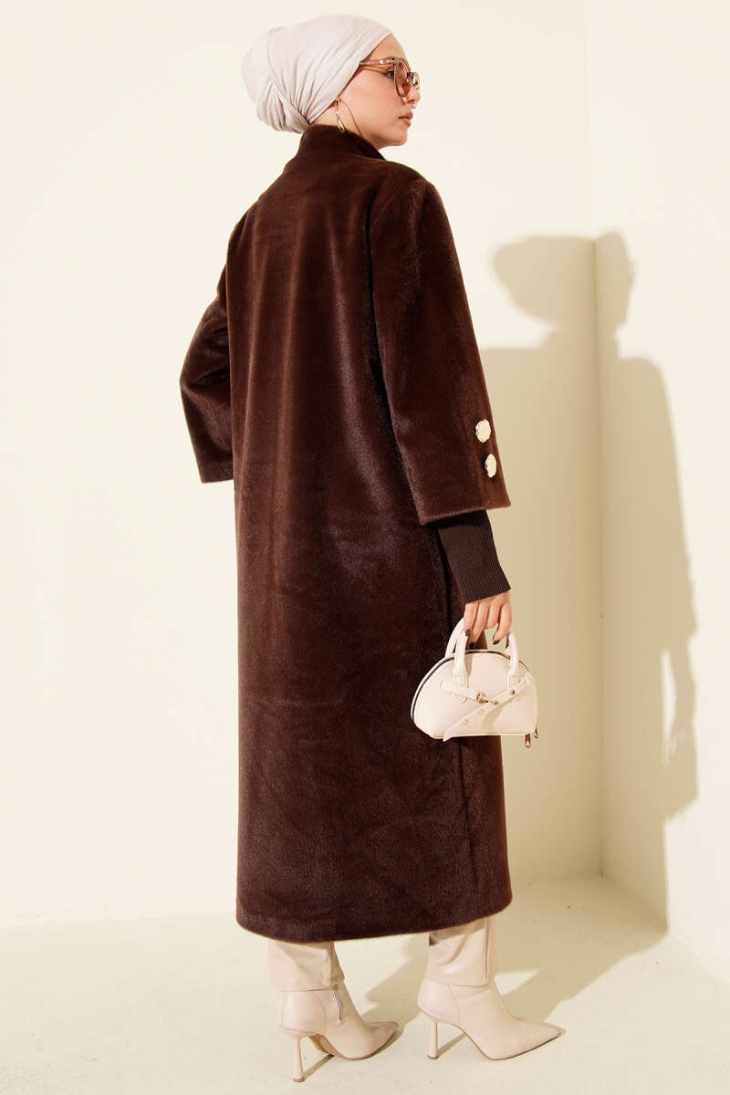 Kol Ribanalı Gold Düğmeli Kaban Füme