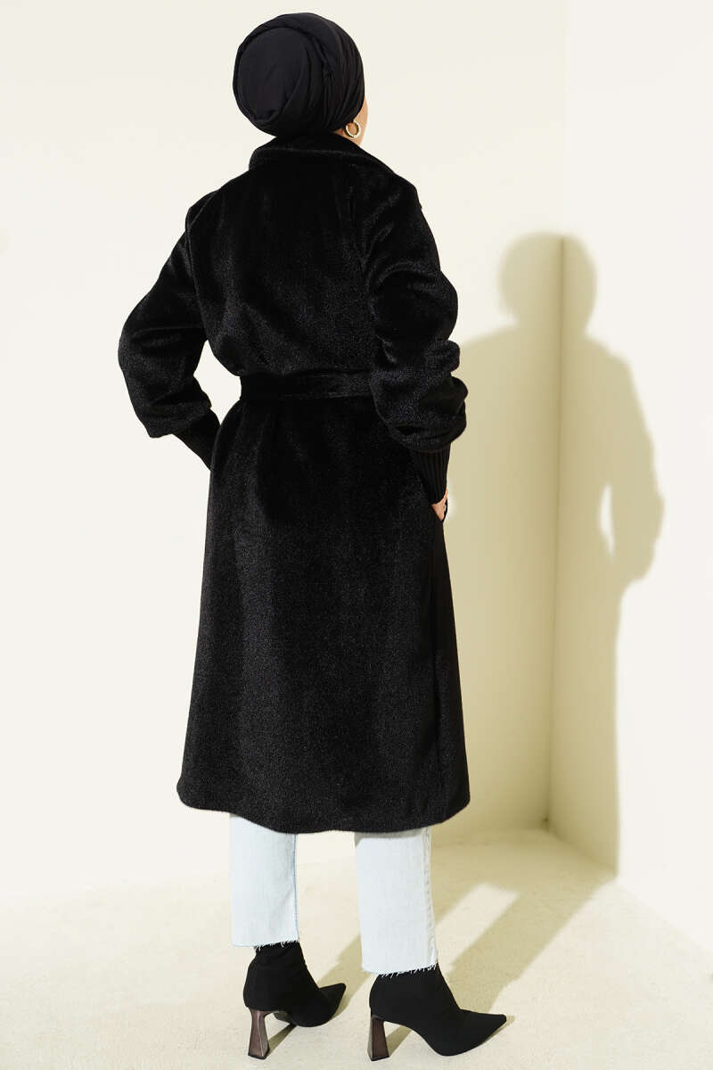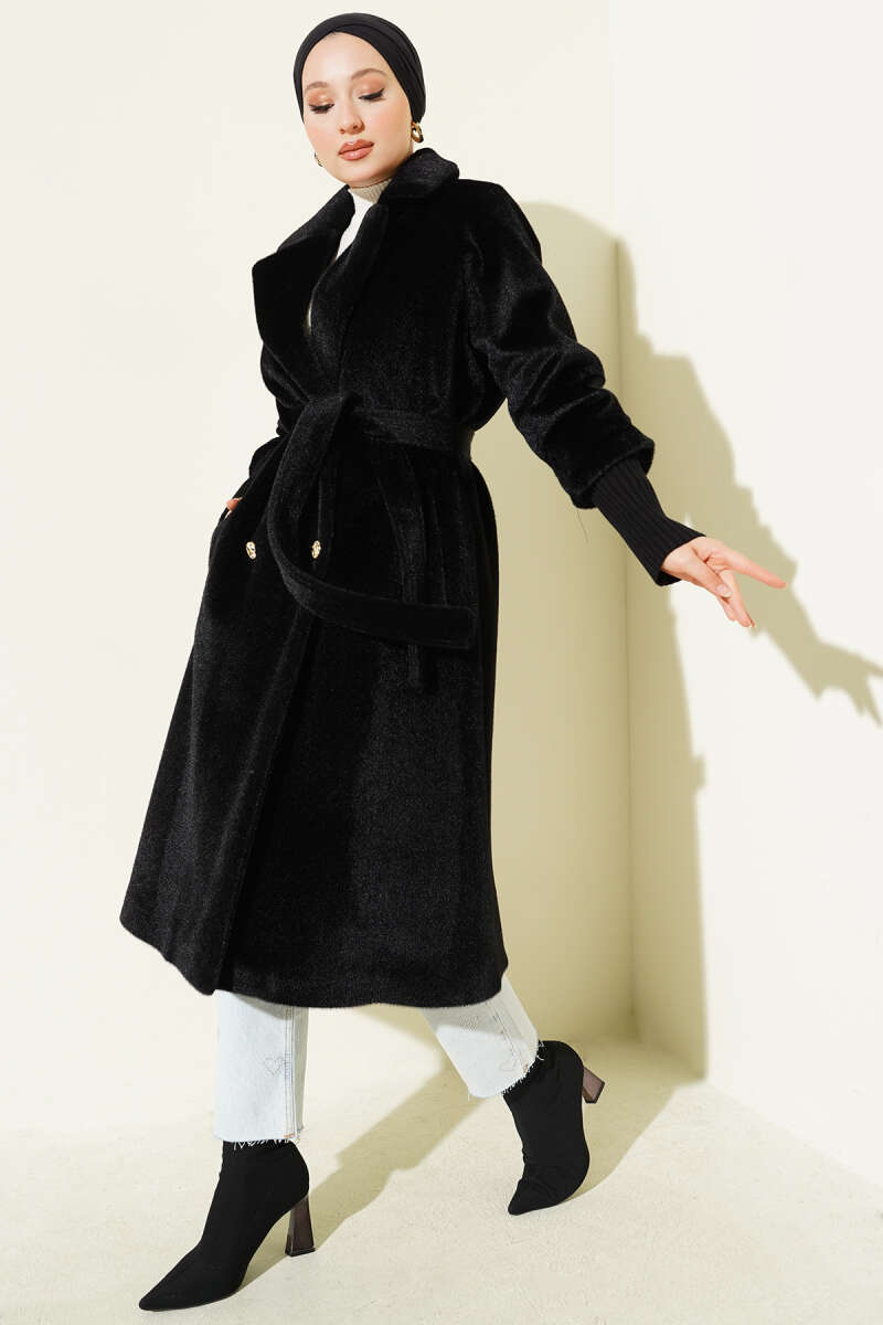 Kruvaze Yaka Asimetrik Kaşe Kaban Latte