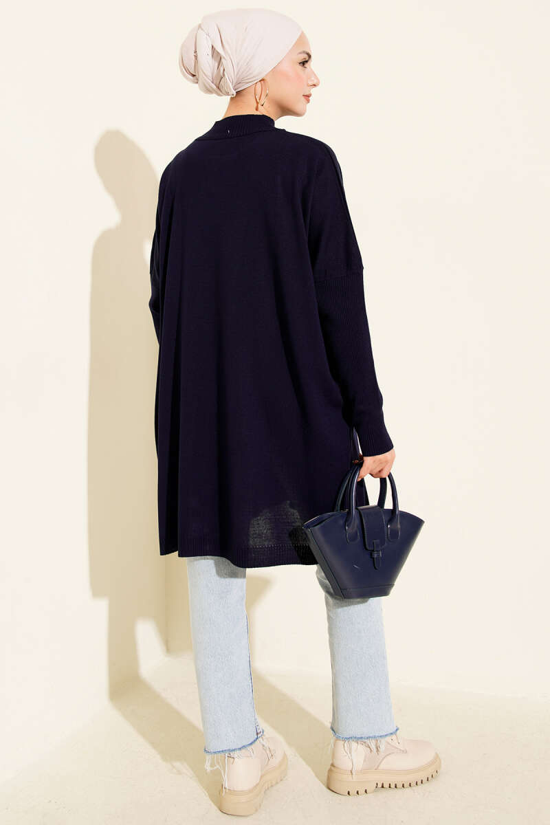 Bilek İpli Fitilli Kaşe Tunik Lacivert