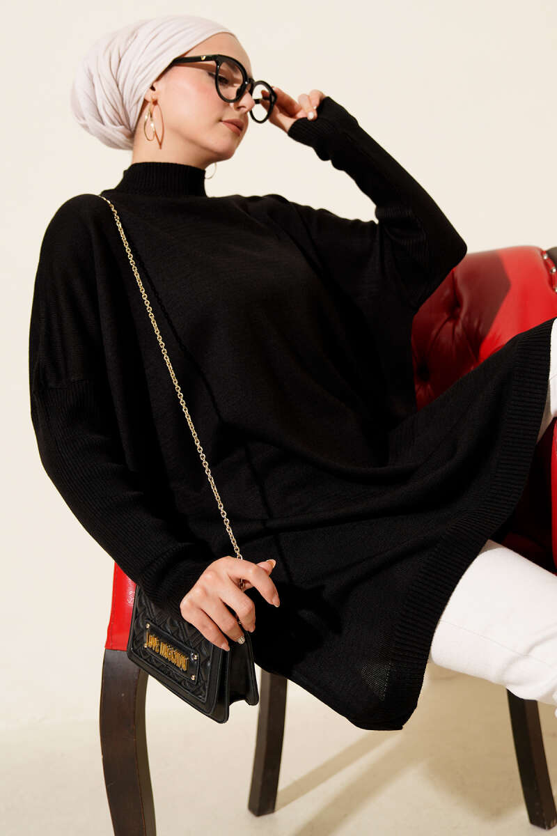 Üç İplik Düşük Kol Basic Sweatshirt Siyah