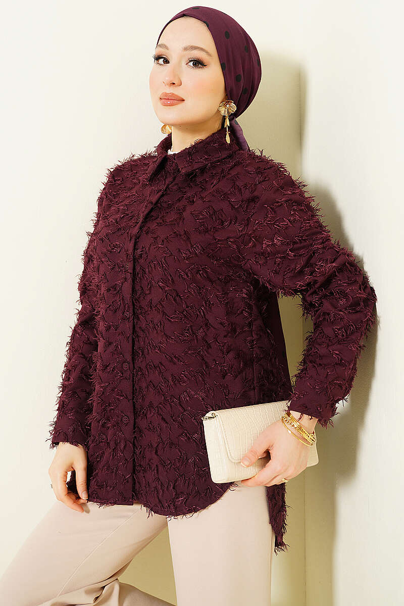 Kol Ribanalı Sakallı Gömlek Mürdüm
