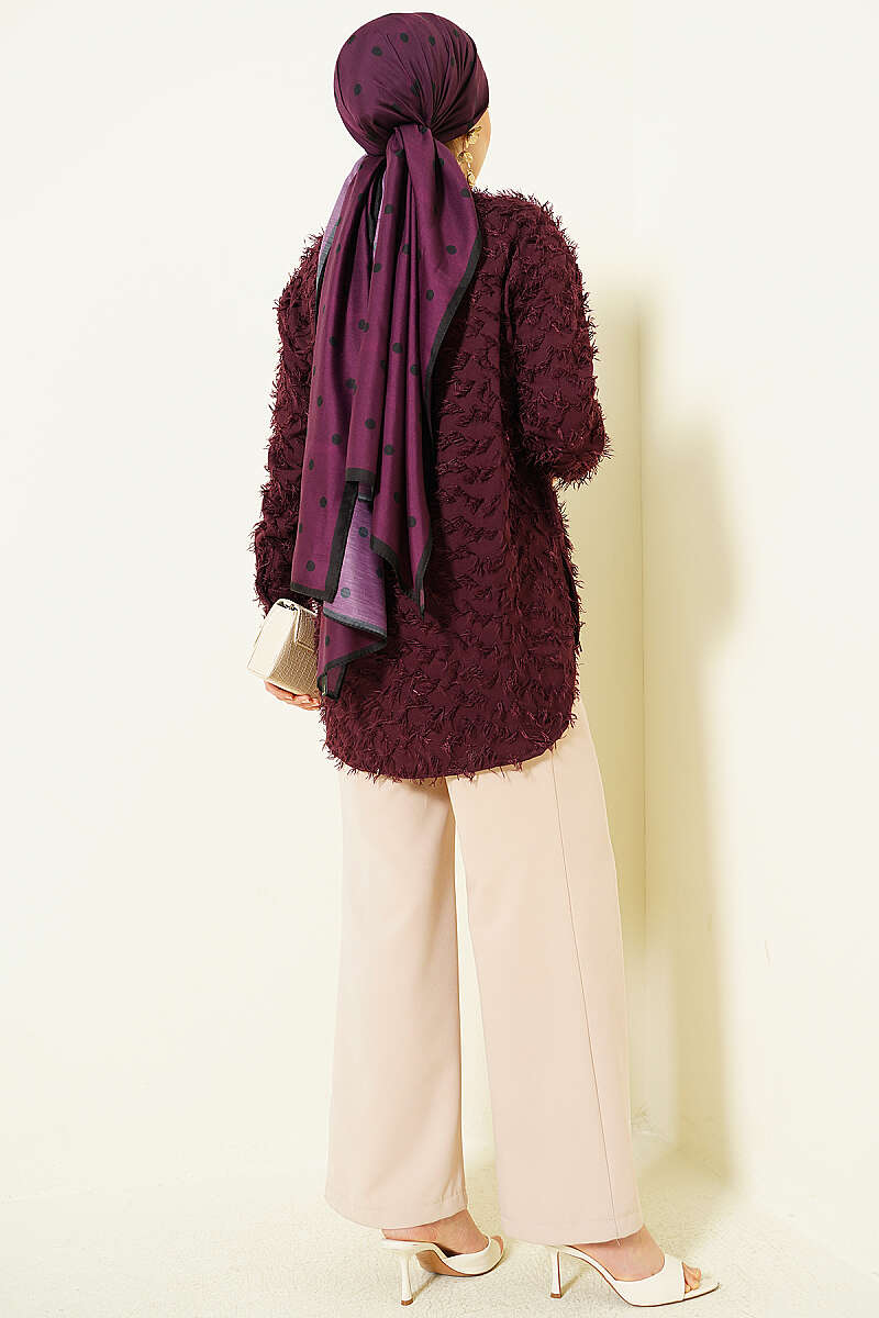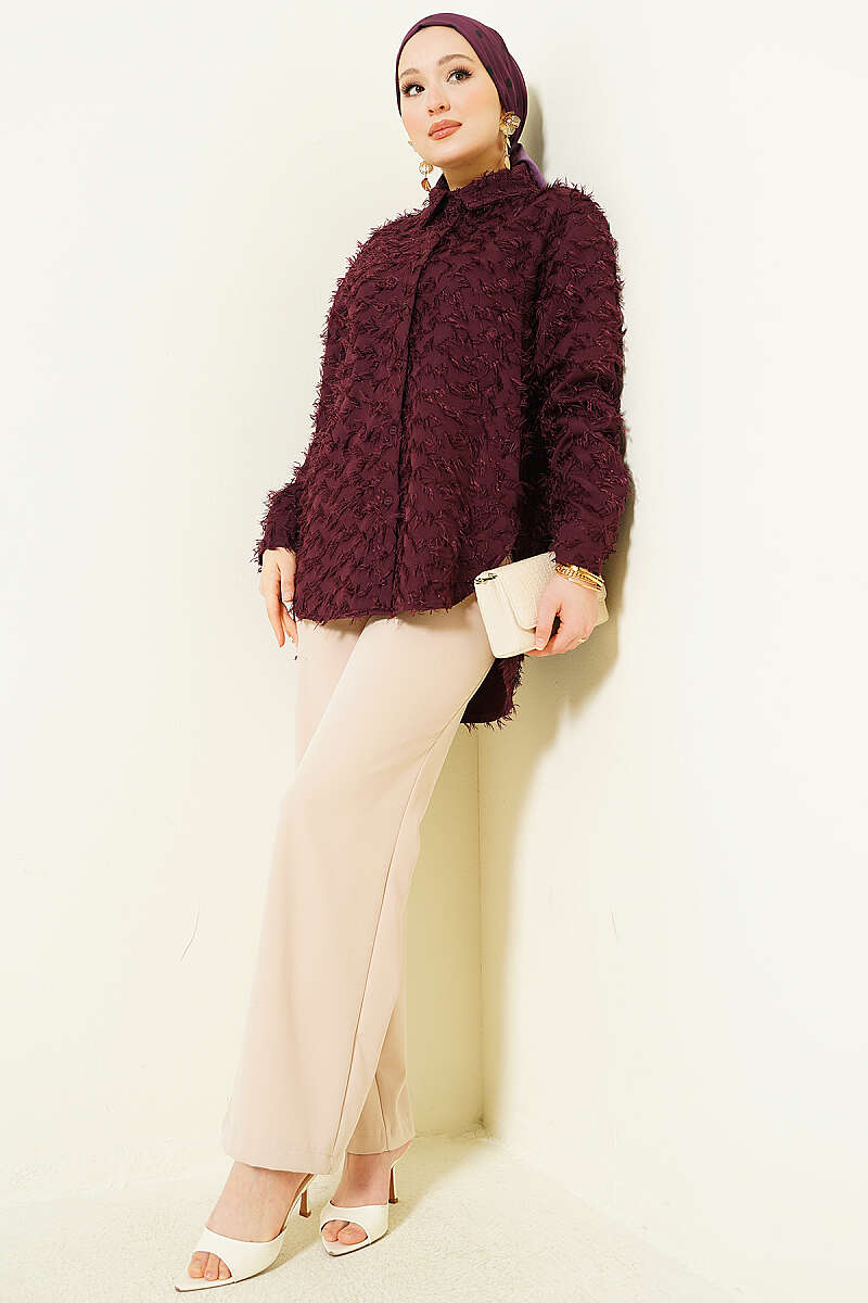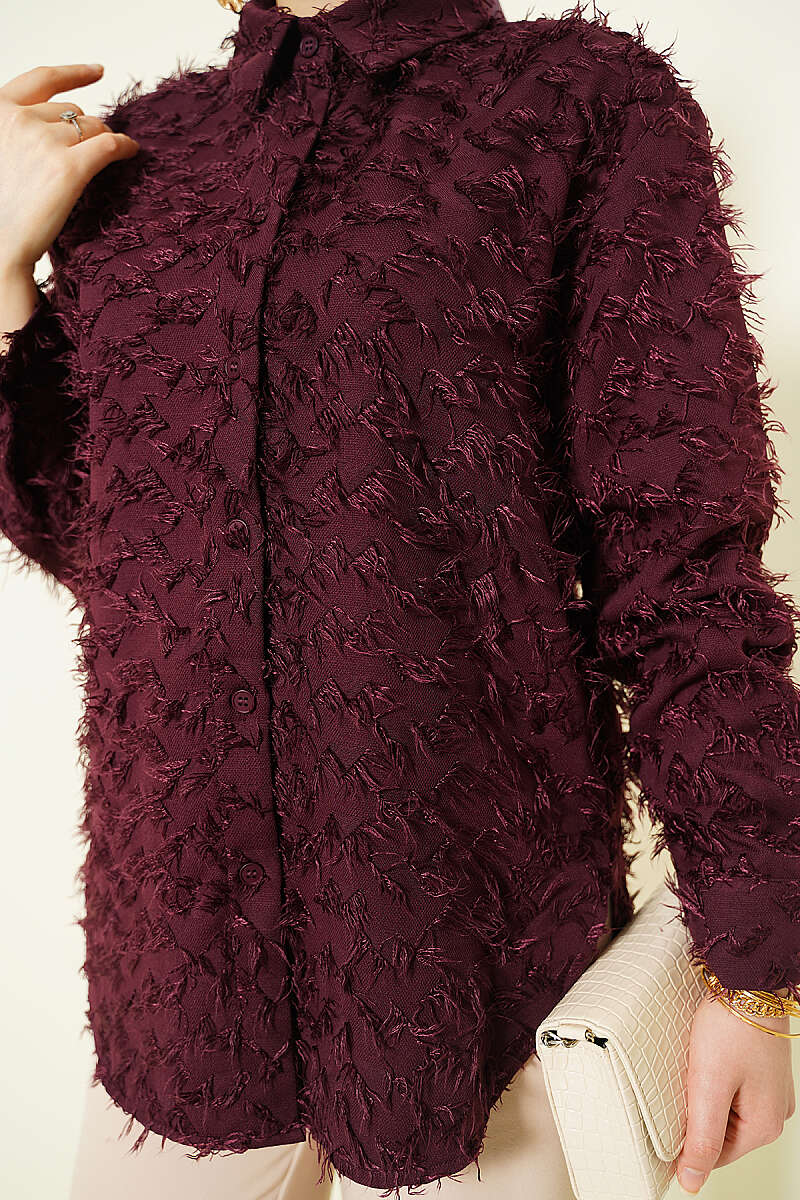 Bilek Fırfırlı Salaş Modal Gömlek Bordo