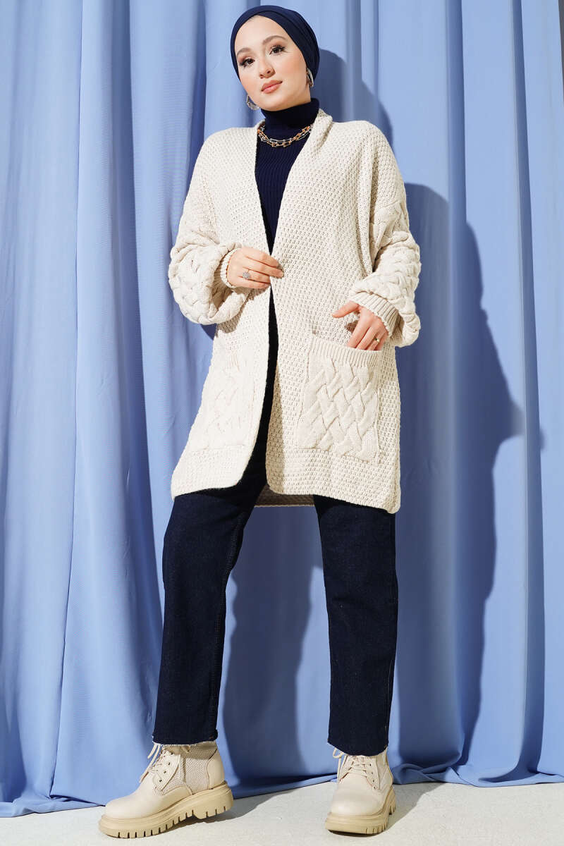 Sepet Örgülü Uzun Triko Hırka Siyah