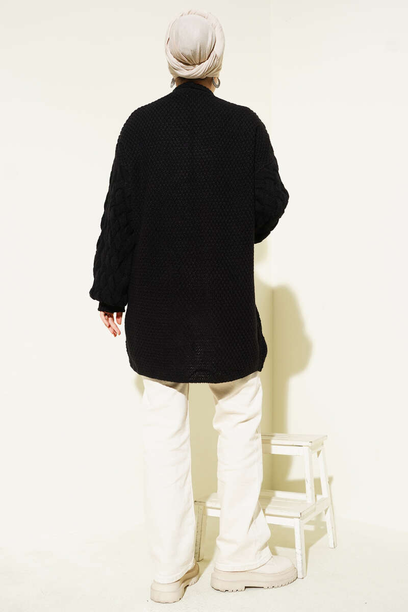 Sepet Örgülü Uzun Triko Hırka Siyah