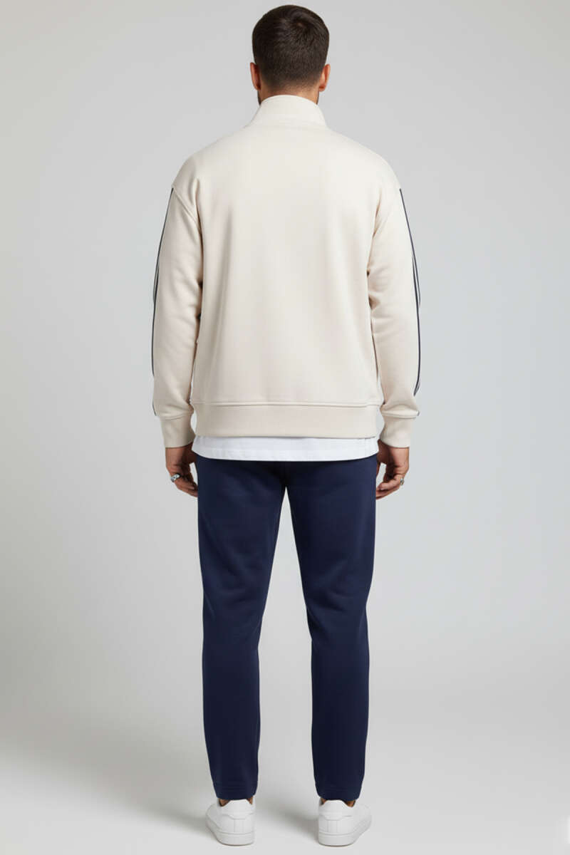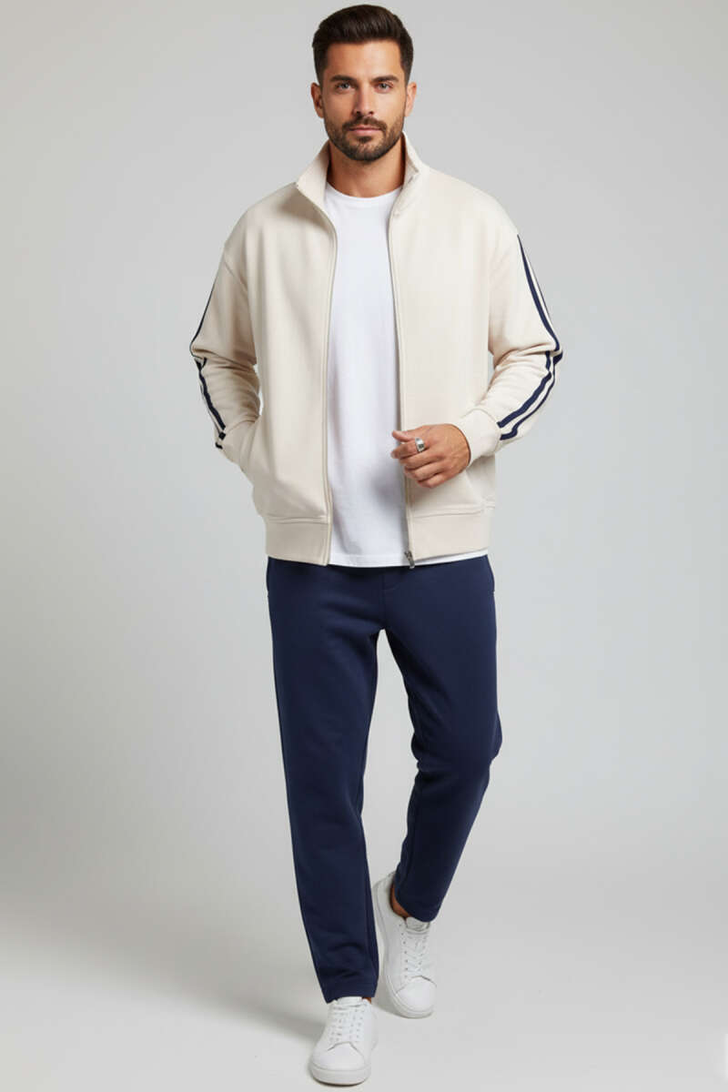 Kol Şeritli Fermuarlı Erkek Eşofman Üst Füme