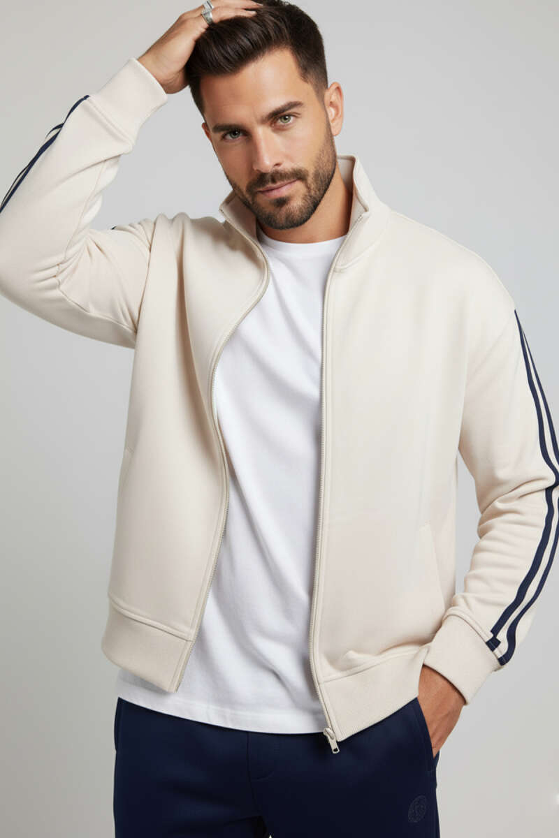 Gabardin Fermuarlı Erkek Ceket Ekru