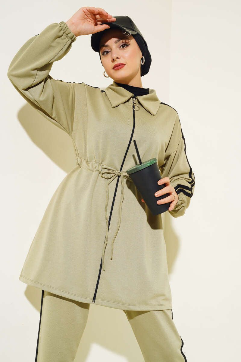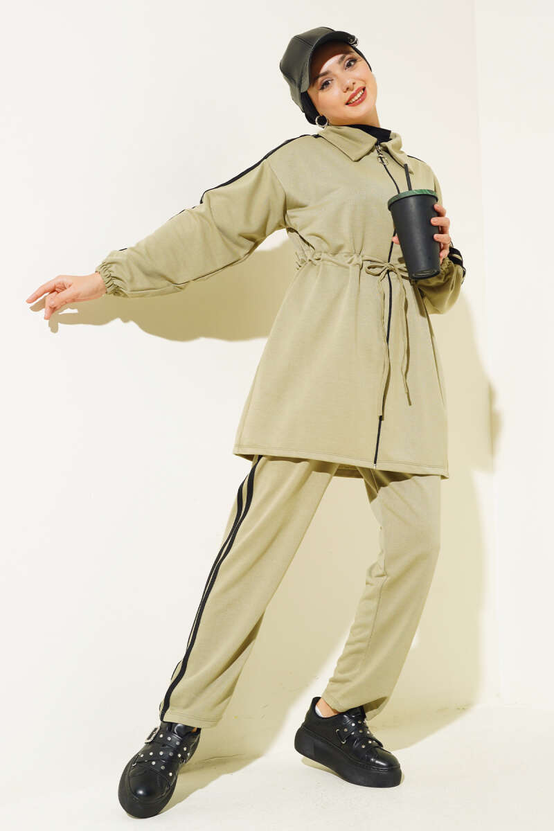Yandan Bağlamalı Tunik İkili Takım Bej