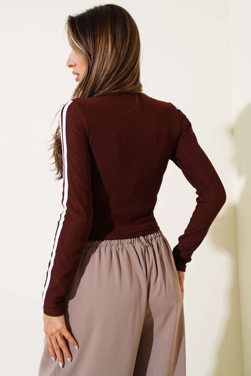 Fitilli Esnek Triko Kazak Kiremit