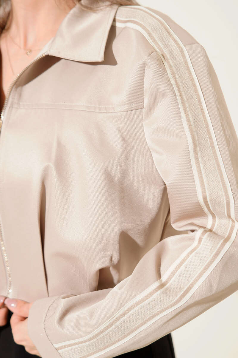 Kol Şeritli Pens Detaylı Crop Ceket Bej