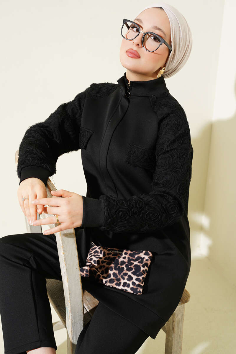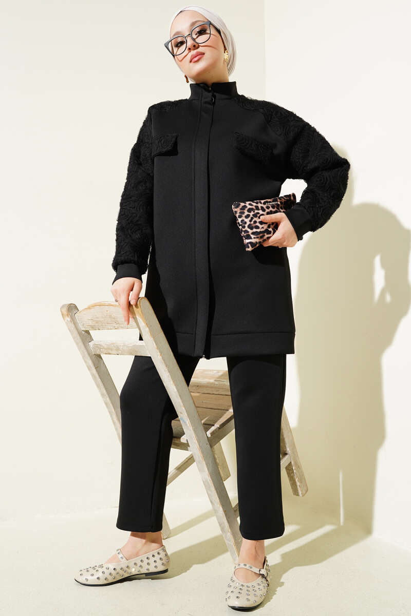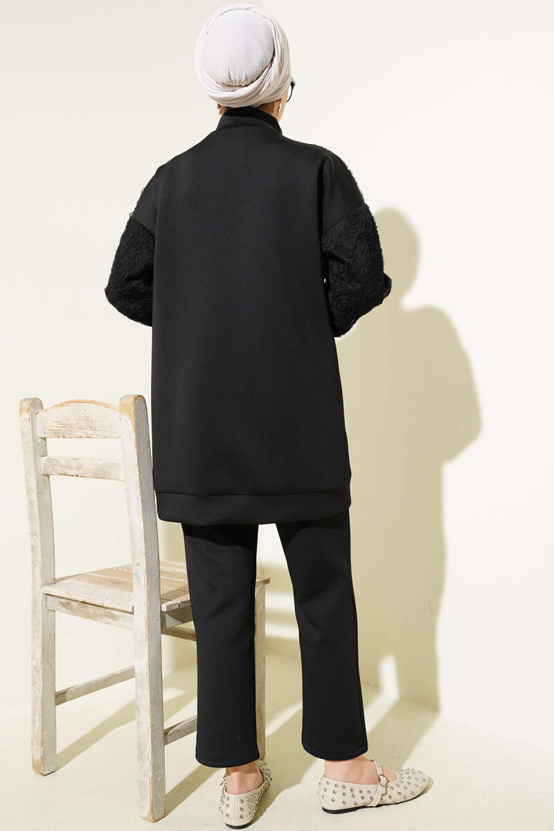Asimetrik Kesim Bisiklet Yaka İkili Takım Siyah