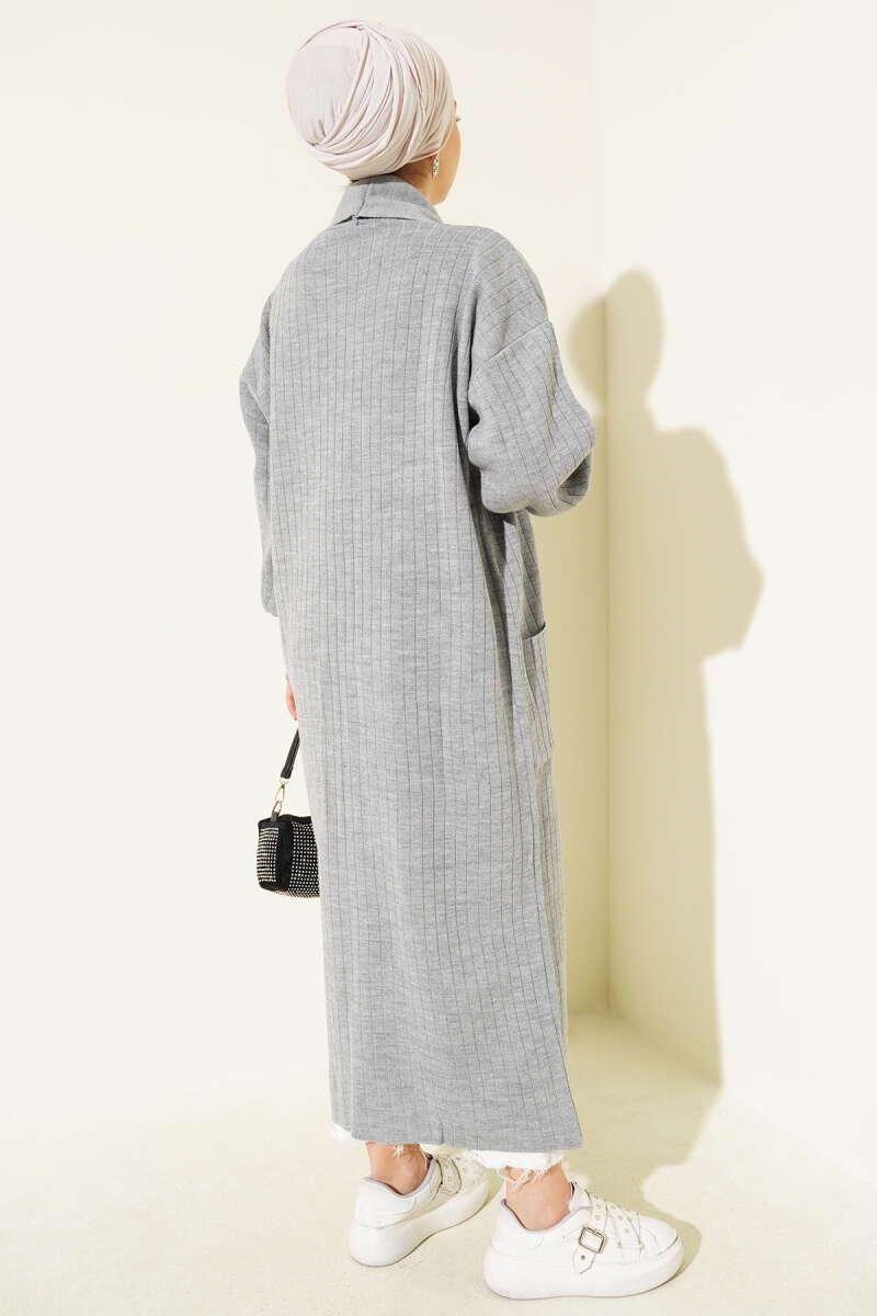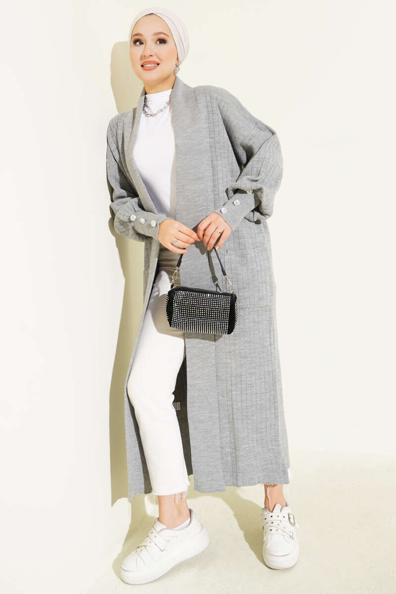 Kol Ucu Düğmeli Şal Yaka Triko Hırka Gri