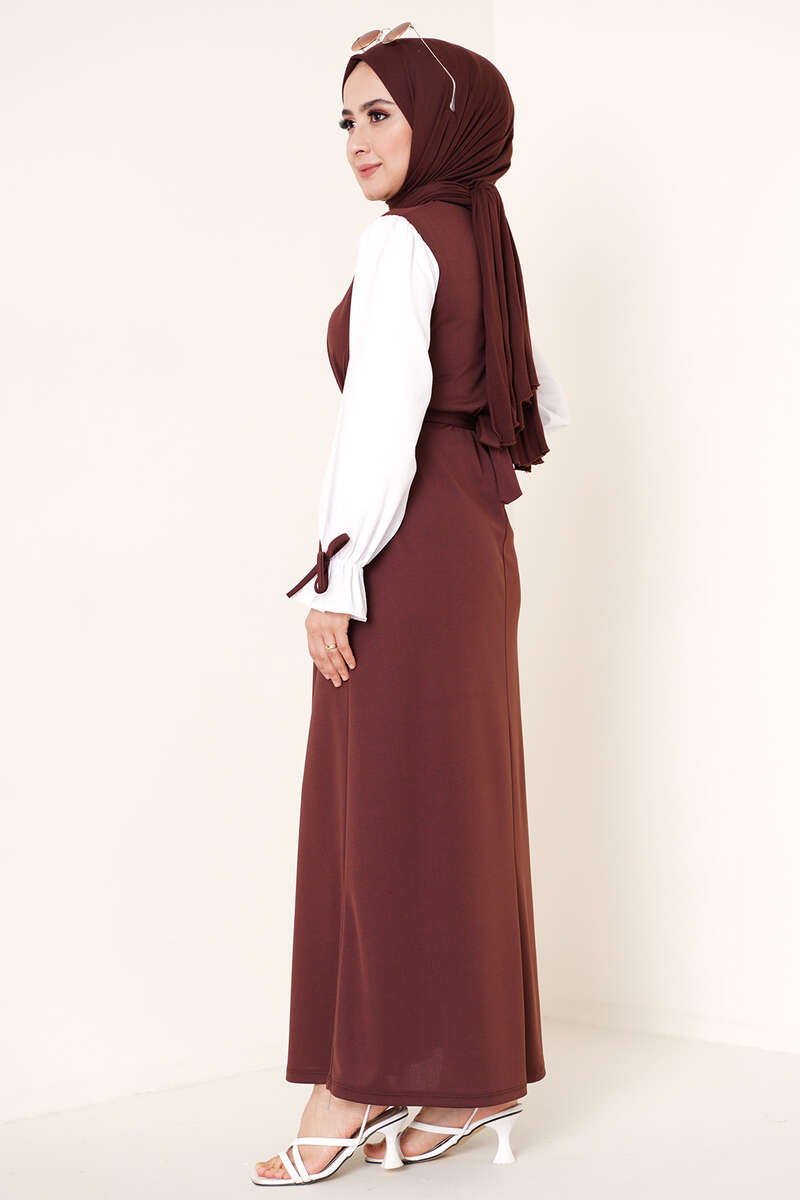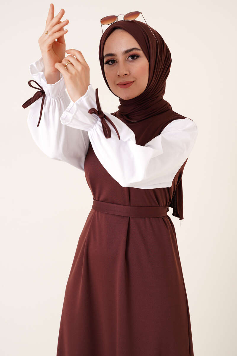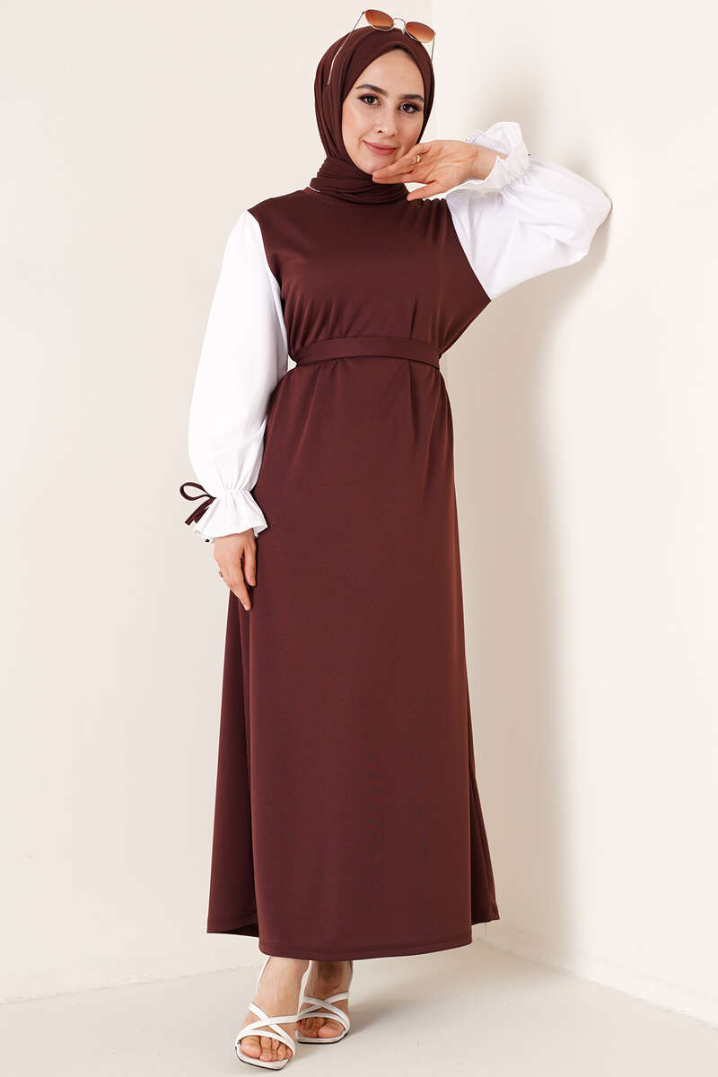 Yeni sezon garnili elbise sizlerle. Bisiklet yakalıdır kolları lastikli olup bileğinde ip detayı bulunmaktadır. Garnili modeldir balon kolludur.