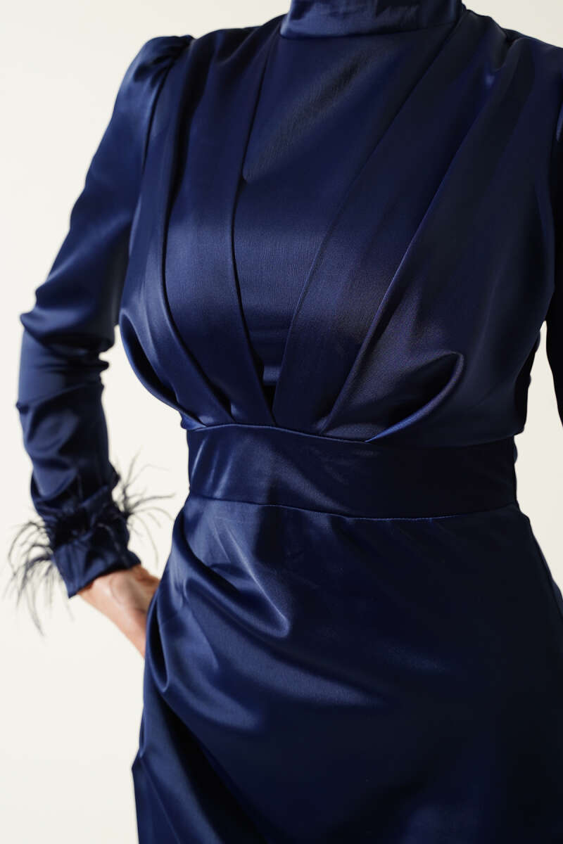 Kuşaklı Dik Fitilli Kaşe Elbise Lacivert