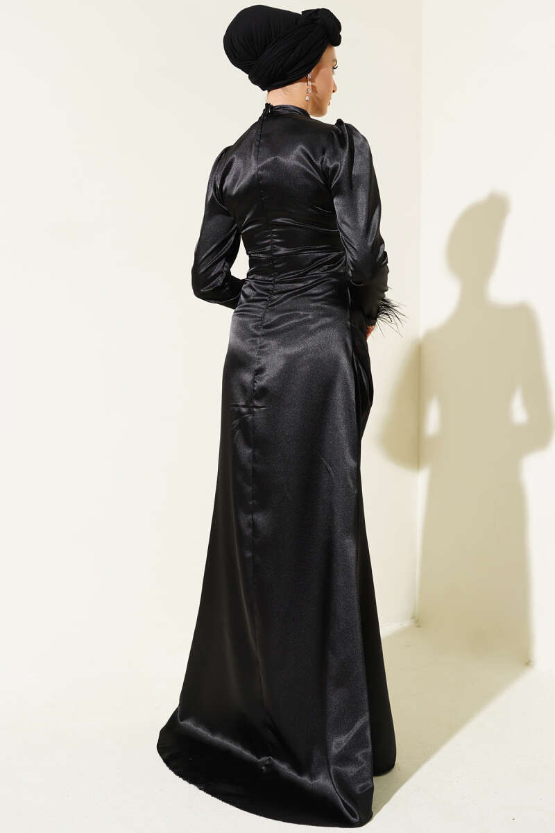 Omuz Pelerinli Taş Detaylı Abiye Elbise Siyah