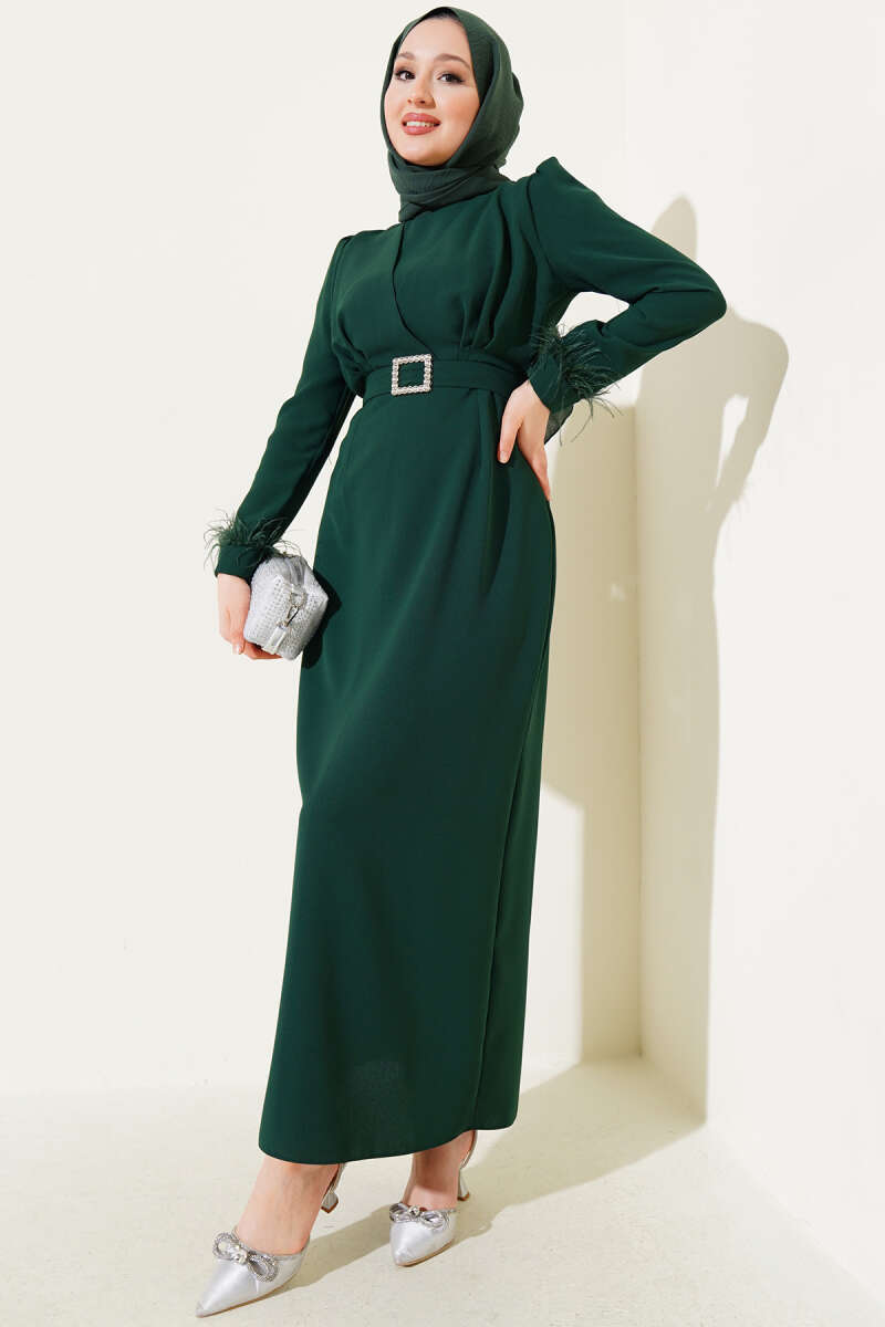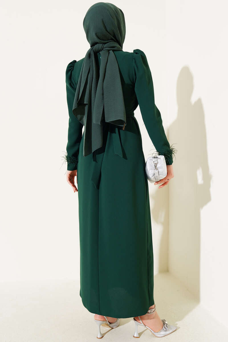 Kolları Fiyonk Detaylı Selanik Elbise Taş