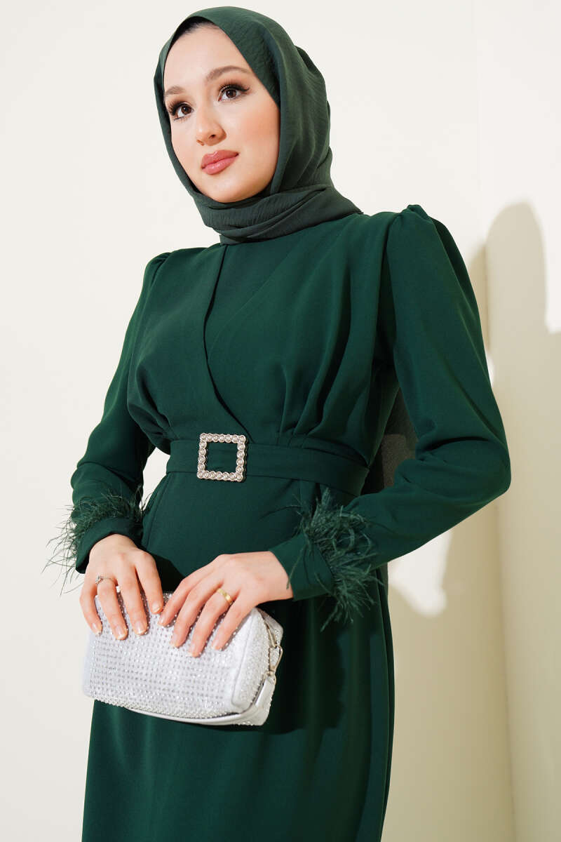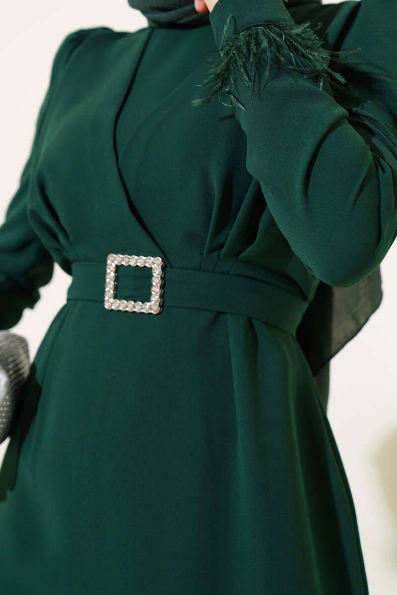 Önü Büzgülü Pul Payet Abiye Elbise Haki